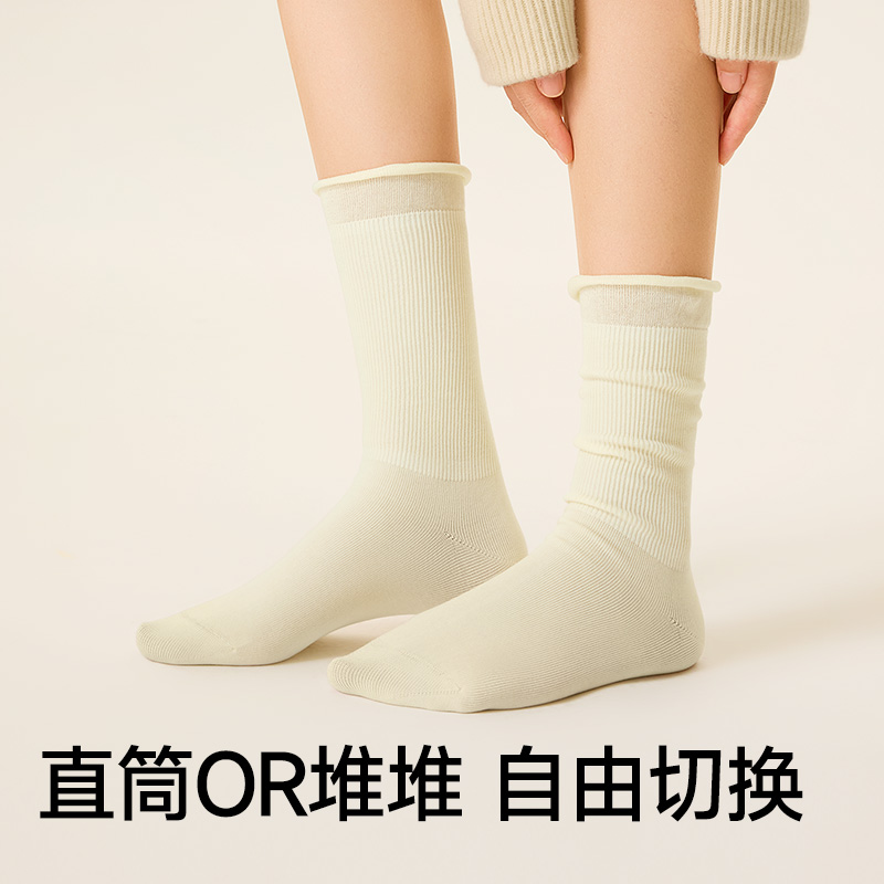 配小皮鞋 花边堆堆袜子女款 爆款 棉袜2025新款 防掉跟无骨中筒 春秋季