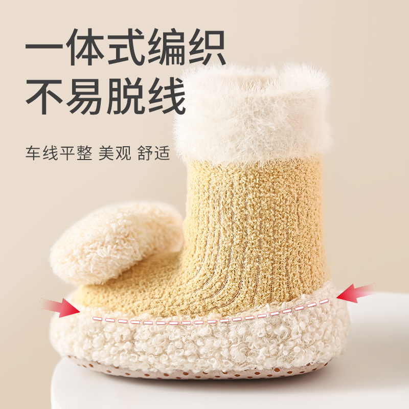 贝因美婴儿袜子袜鞋 隔凉男女童袜 冬地板袜宝宝防滑软底室内学步鞋