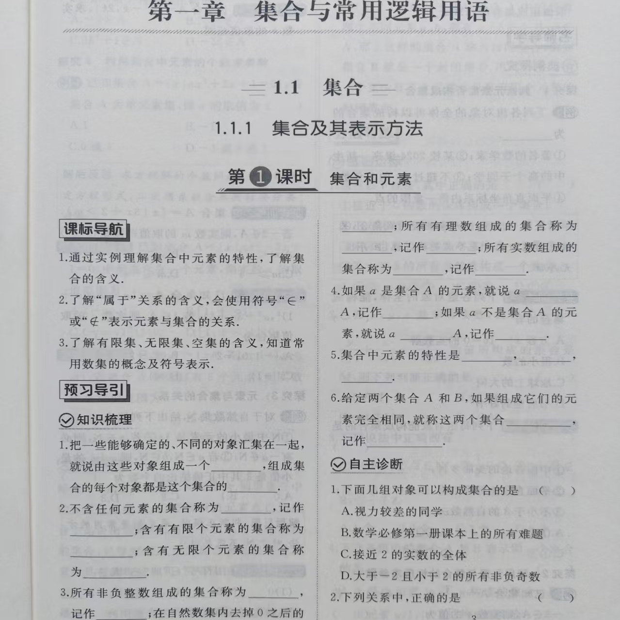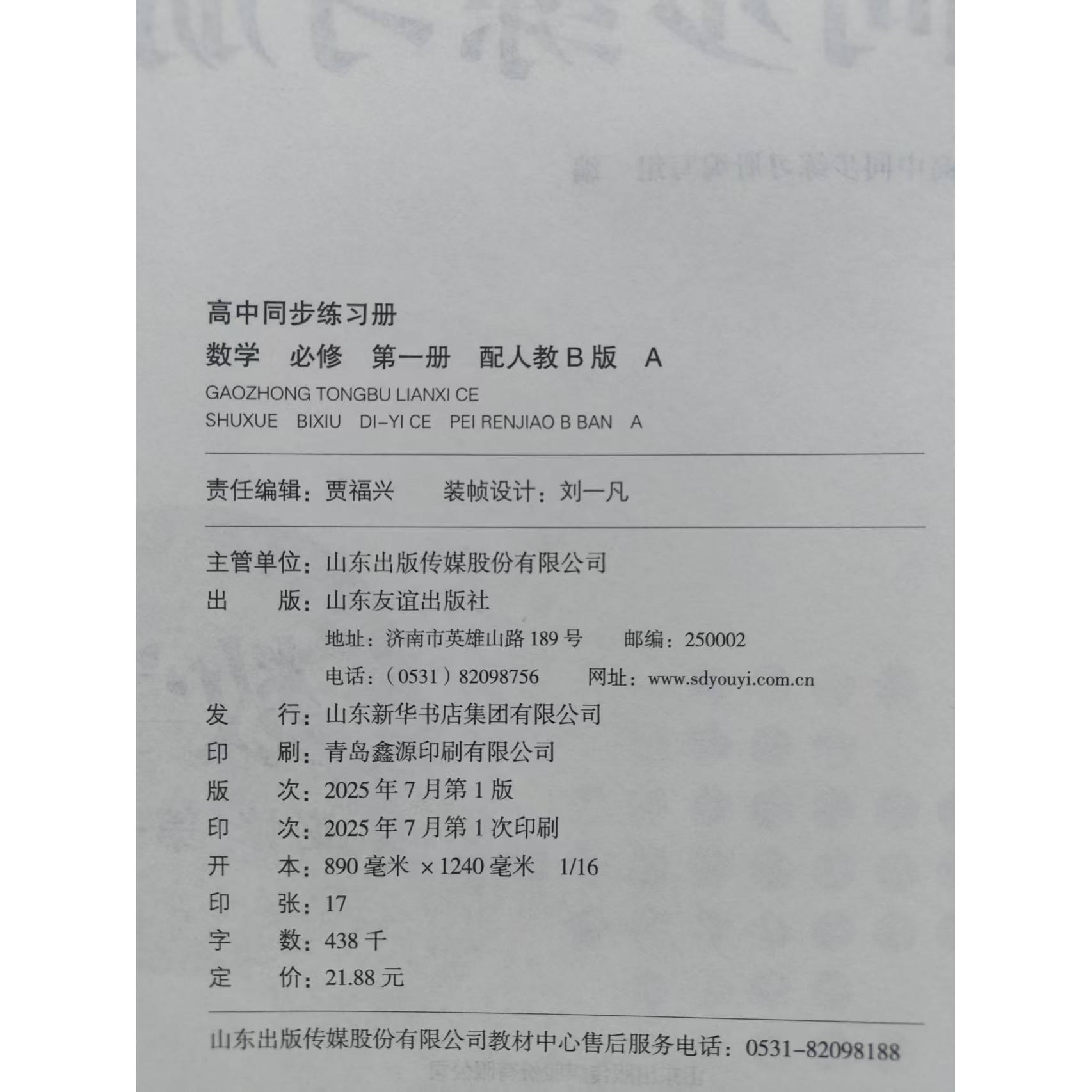 A层级 社高一数学必修一同步练习册配人教B版 2025秋A层配人教B版 高中同步练习册数学必修第一册山东友谊出版