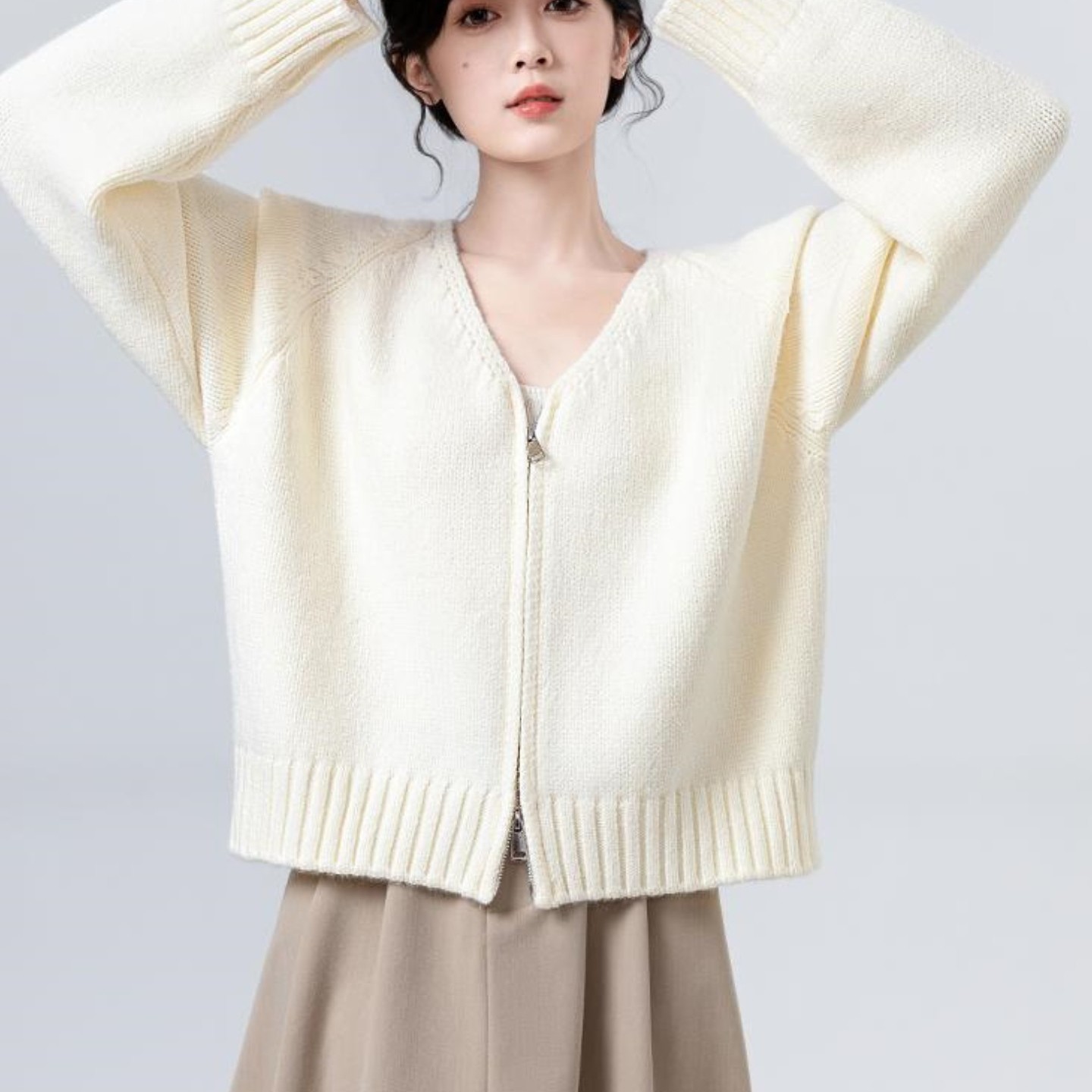 纯棉春秋外套纯色百搭圆领毛衣针织衫 宽松针织开衫 潮 女装 2025新款