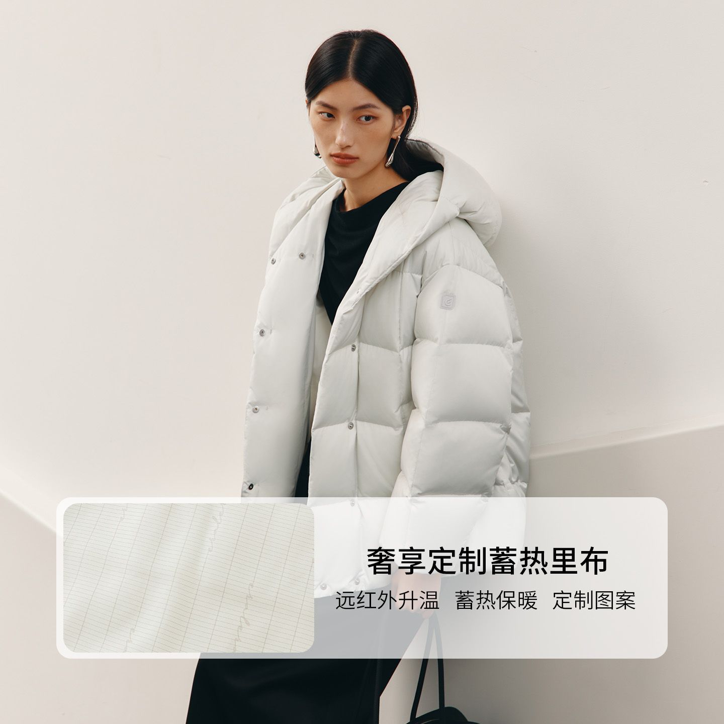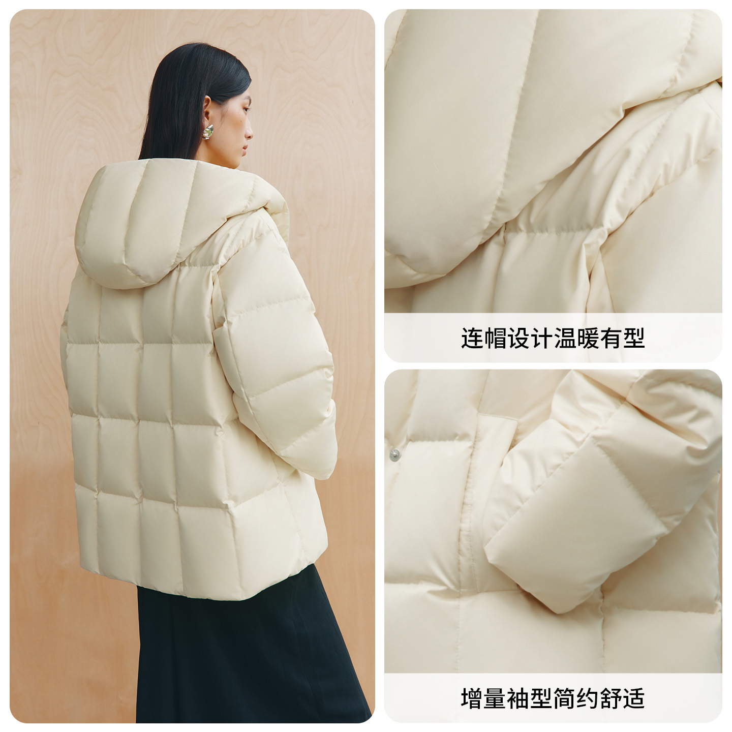 秋冬外套 型简约舒适保暖短款 艾莱依2025新款 连帽鹅绒服女士增量袖