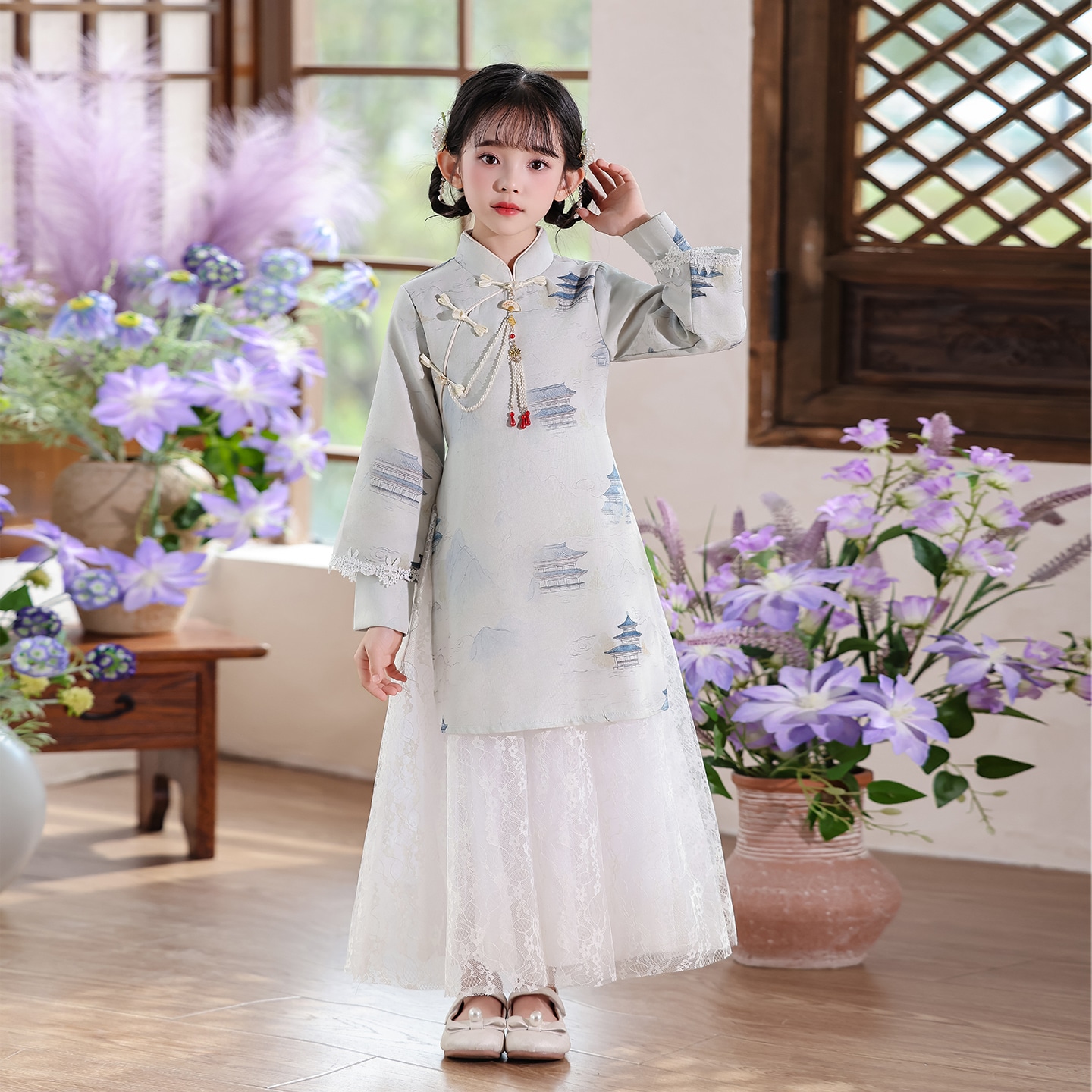 汉服古风中国风中秋季 春秋儿童新中式 连衣裙 2025新款 女童旗袍秋装