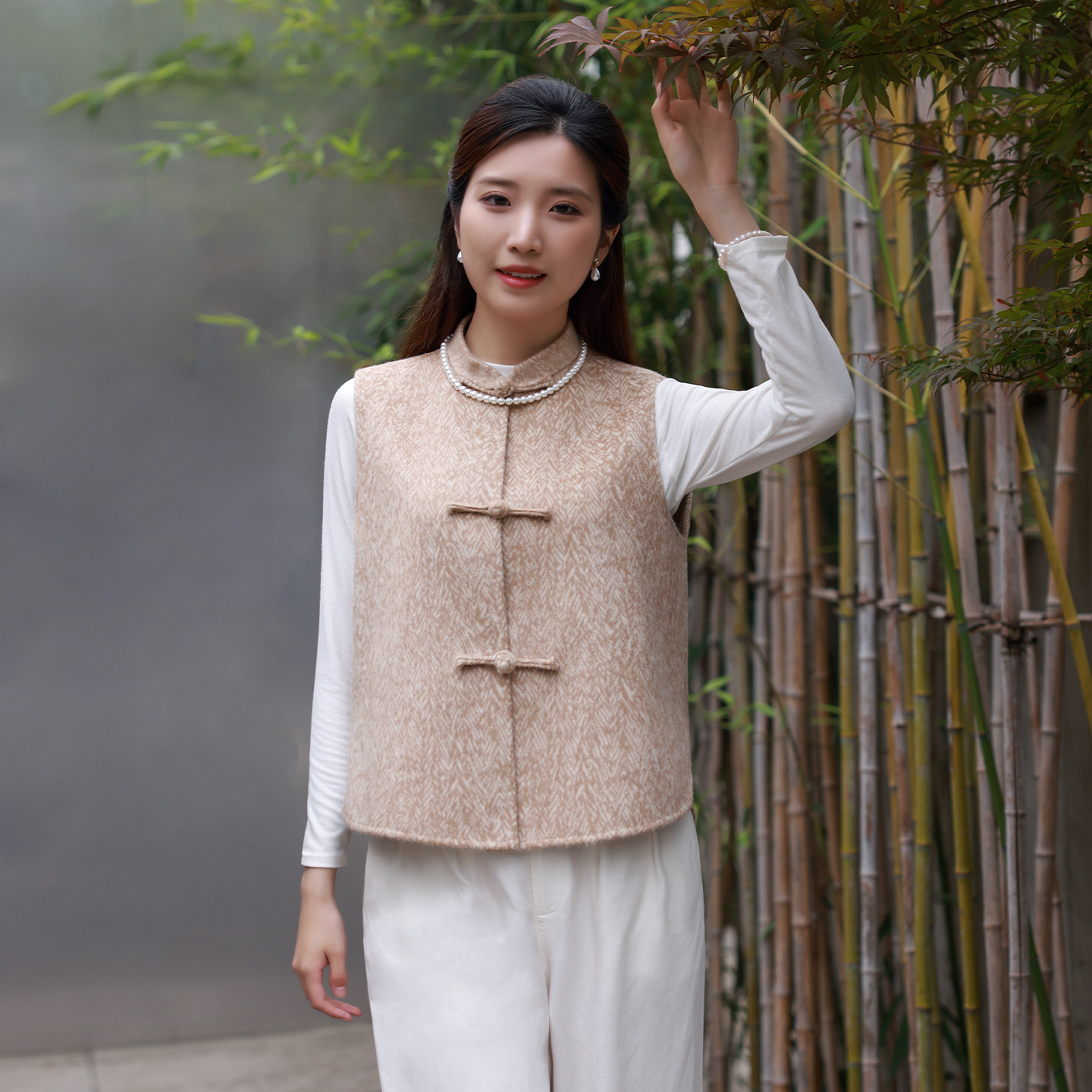 男士 坎肩外套 无领纯棉马甲春秋背心多口袋马夹中老年休闲宽松大码