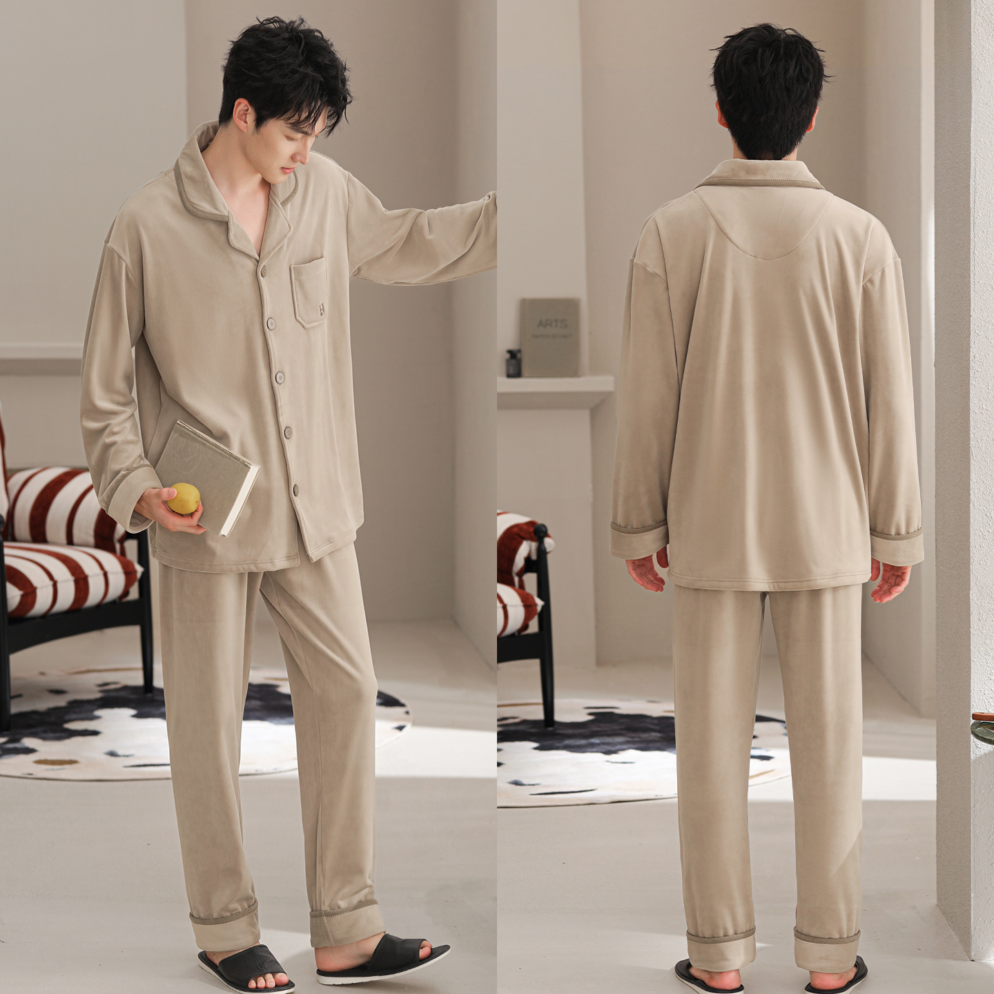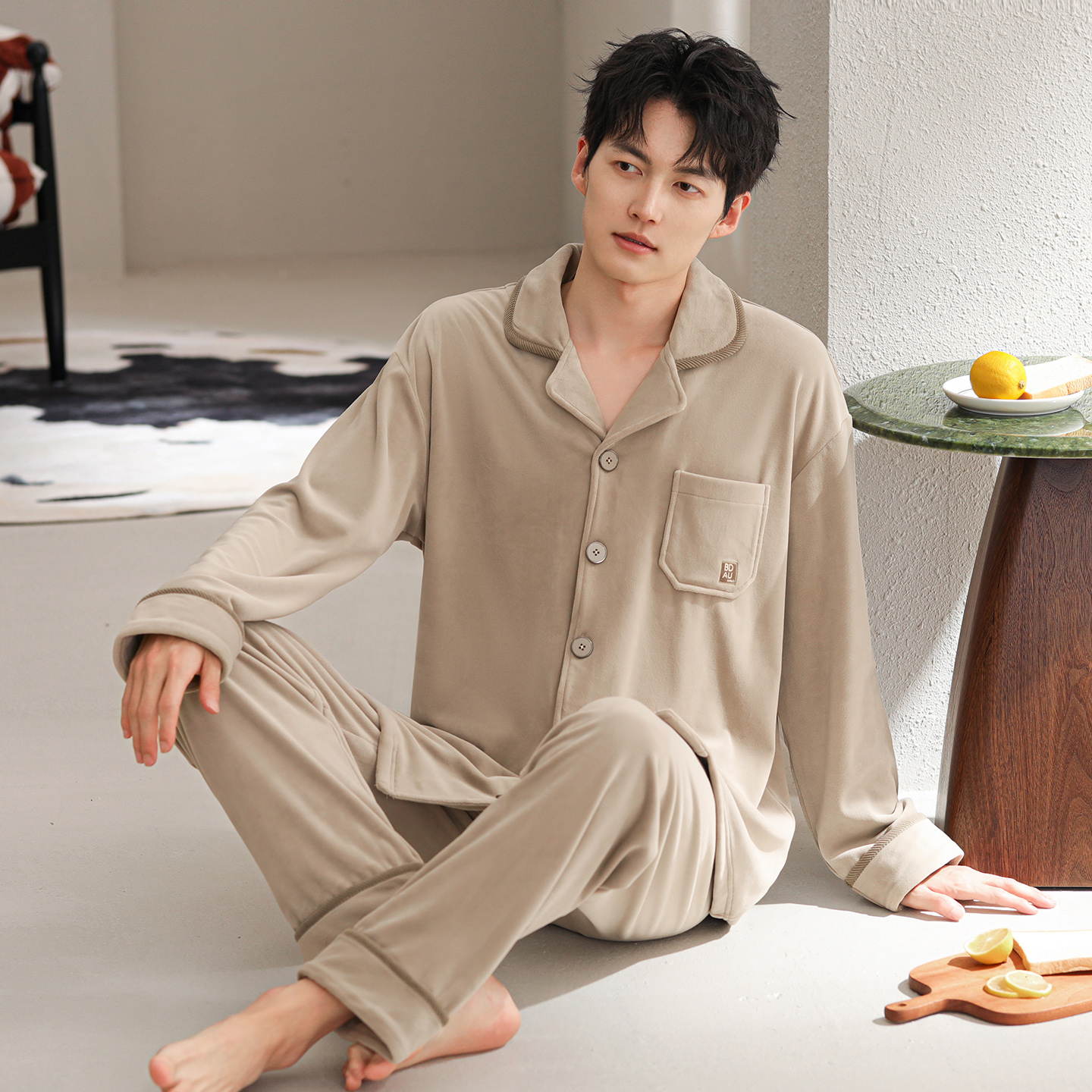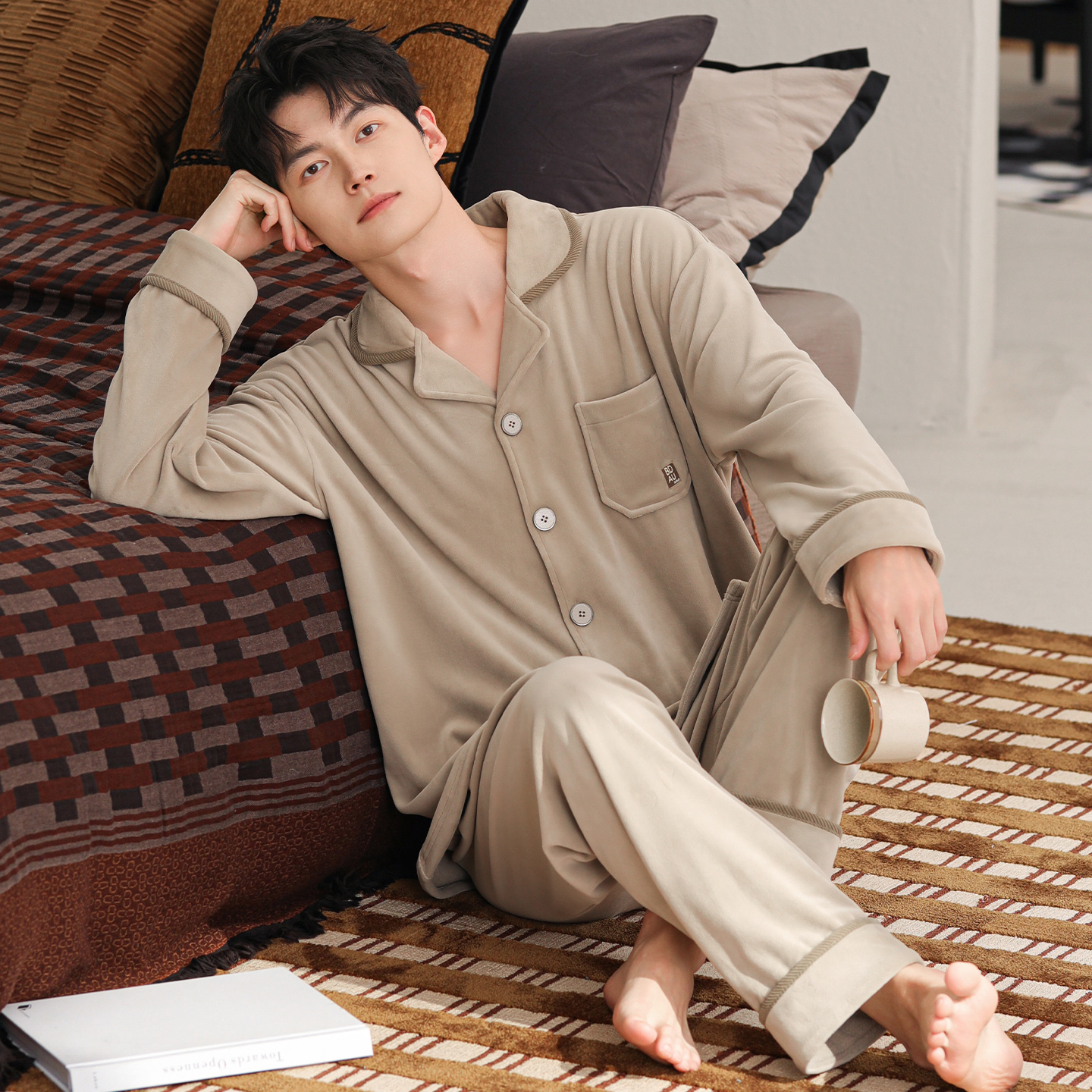 春秋款 睡衣男士 秋冬海岛绒大码 珊瑚绒加厚加绒男款 薄绒家居服 冬季
