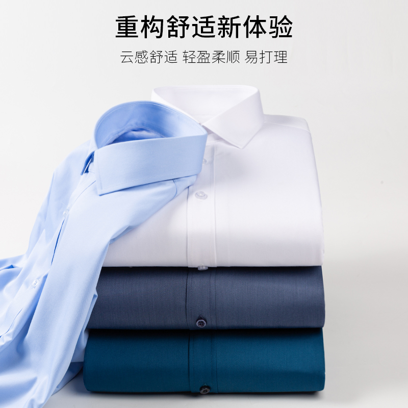 罗蒙男士 长袖 衬衫 工装 竹纤维免烫 秋季 易打理商务衬衣 直降