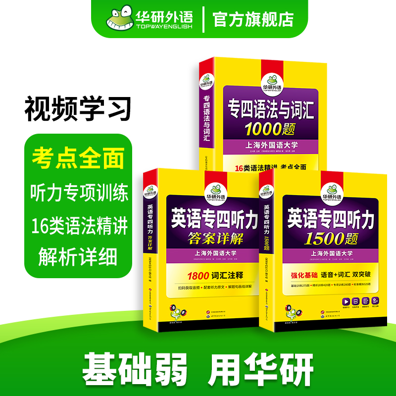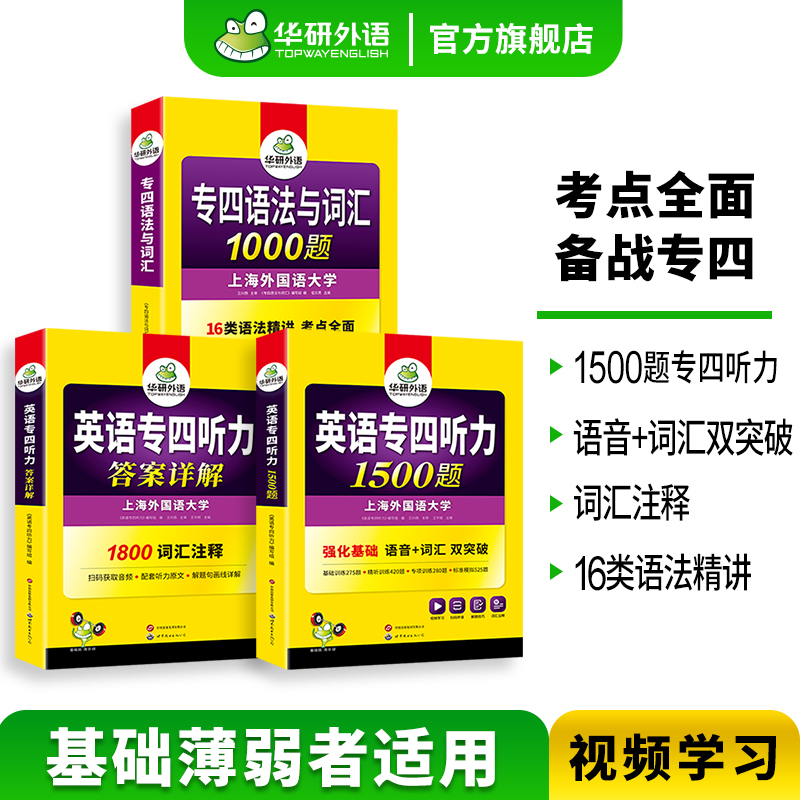 华研外语备考2026专四听力1500题语法与词汇1000题资料英语专业四级听力语法强化词汇专项训练tem4级资料 官方旗舰店