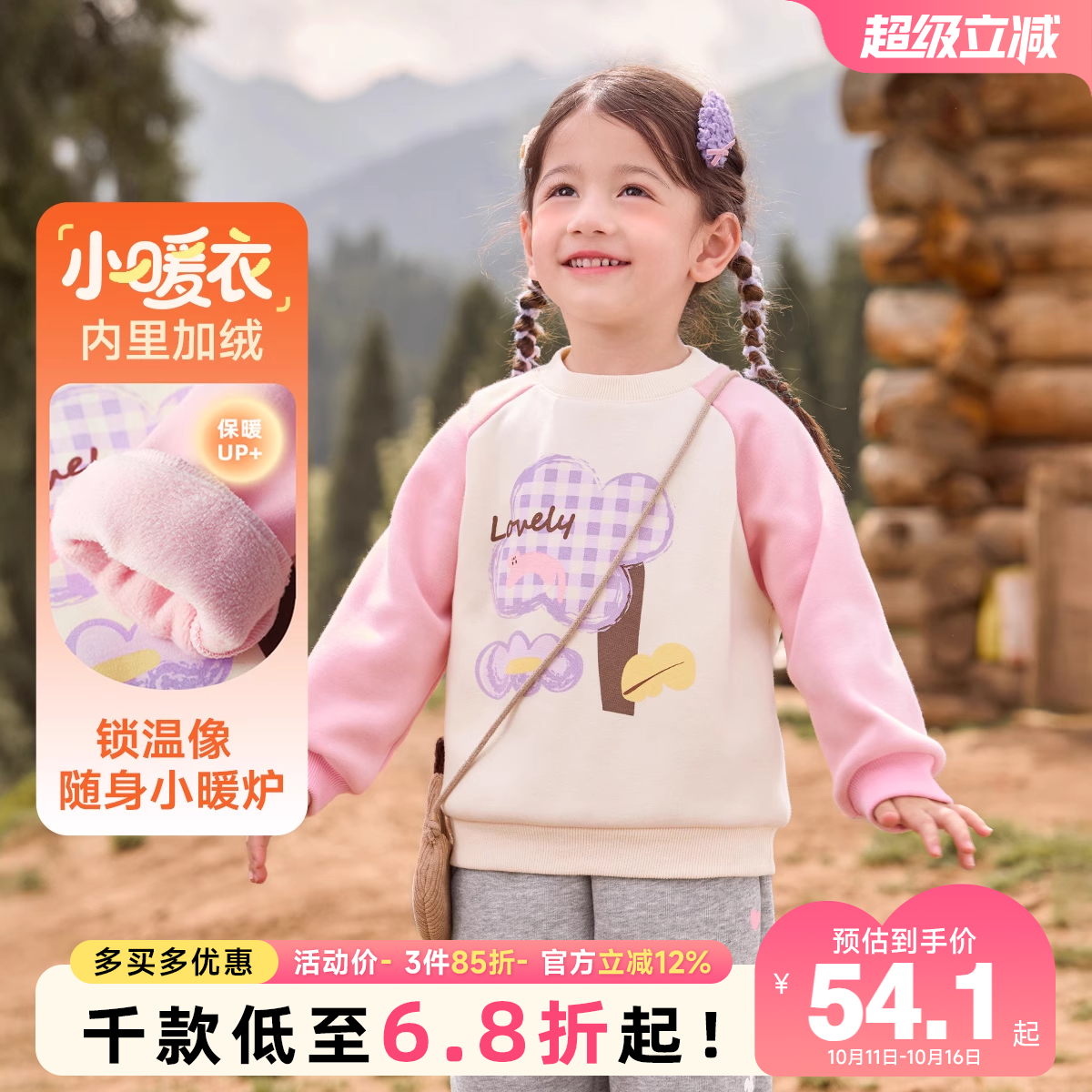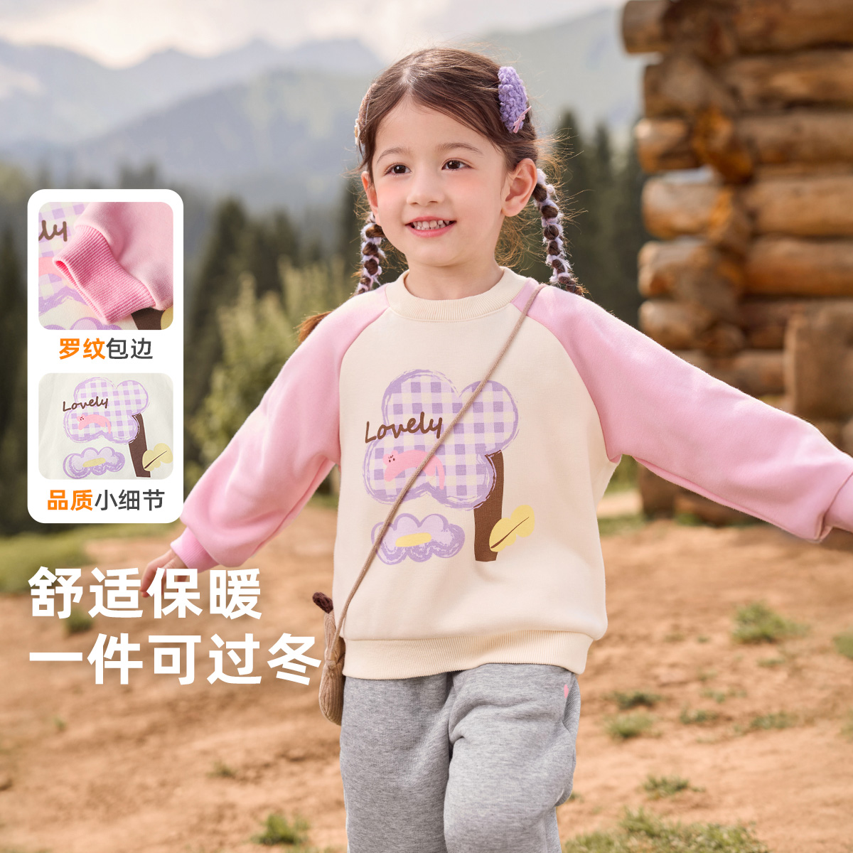 童装 女童上衣加绒冬款 插肩圆领卫衣儿童保暖冬装 加厚长袖 女孩冬季