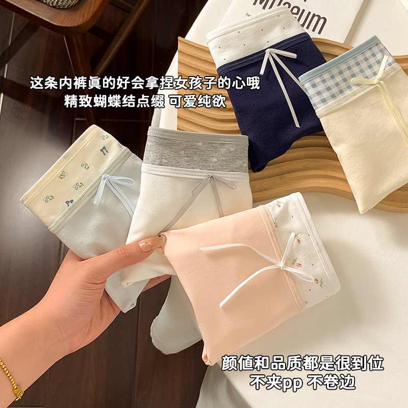 蝶安芬中腰收腹内裤 头 女纯棉舒适性感蝴蝶结无痕平角提臀三角裤