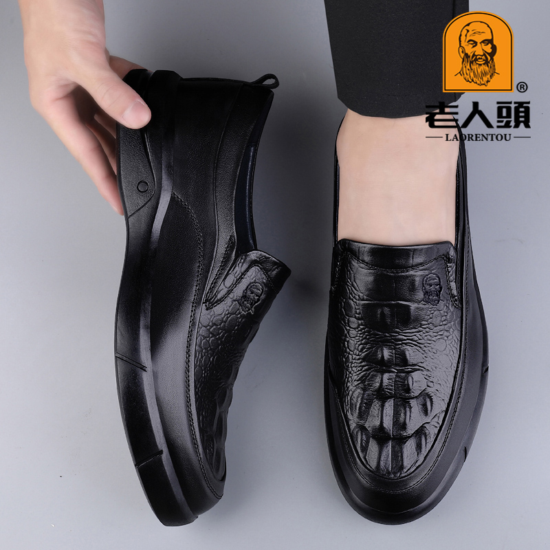 休闲鞋 老人头男鞋 轻便舒适黑色高档皮鞋 厚底增高乐福鞋 一脚蹬皮鞋