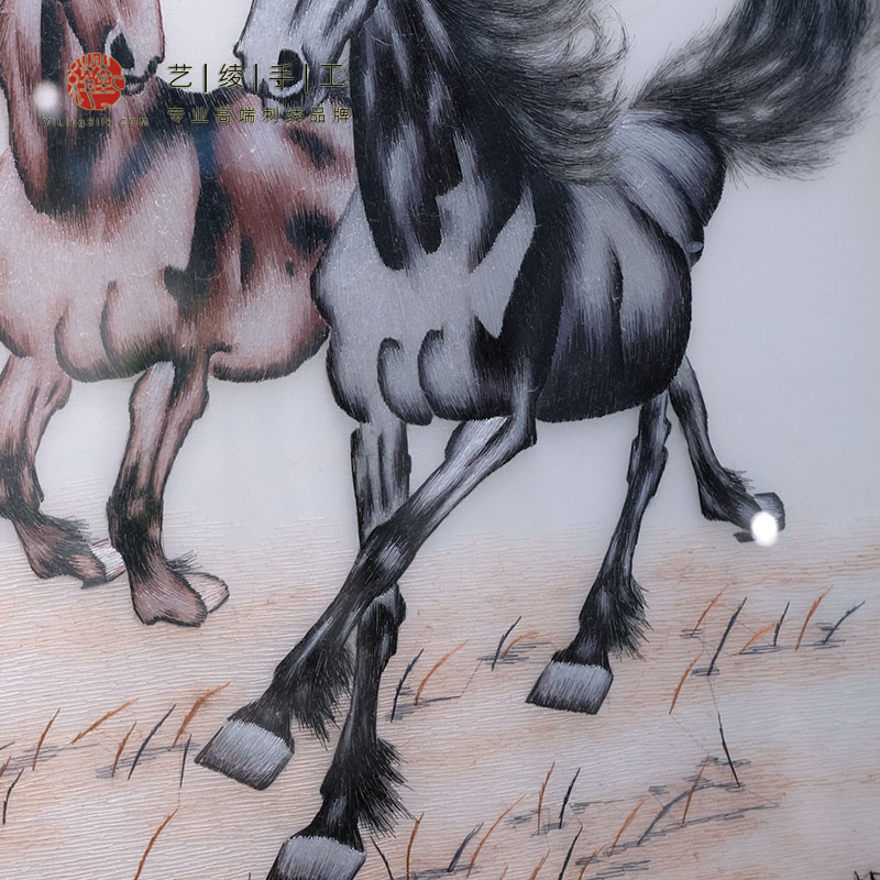艺绫手工刺绣新中式 饰挂画客厅玄关马到成功奔马骏影图 现代苏绣装