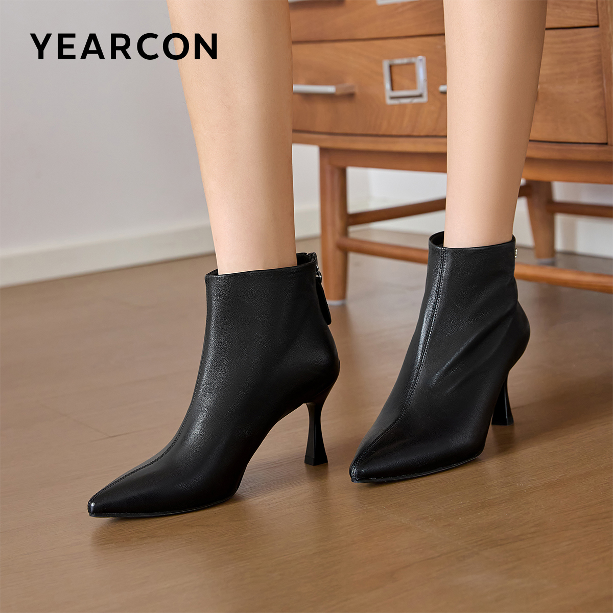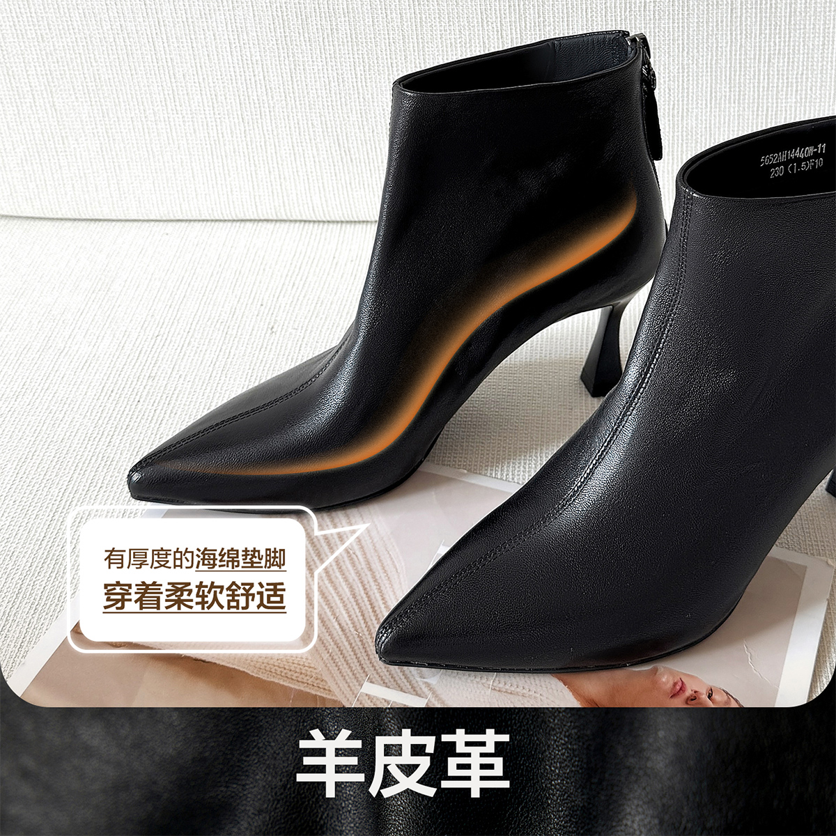 短靴细跟气质显瘦单靴及踝靴女士皮鞋 真皮法式 2025冬季 意尔康女鞋