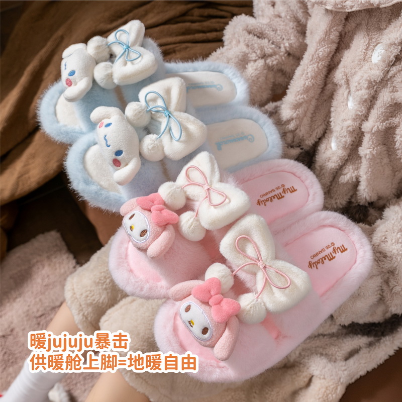 室内中大童防滑居家鞋 外穿保暖毛毛拖鞋 女2025年冬季 三丽鸥棉拖鞋