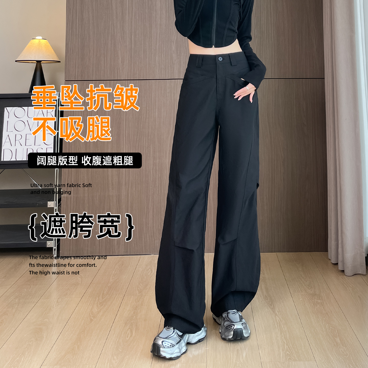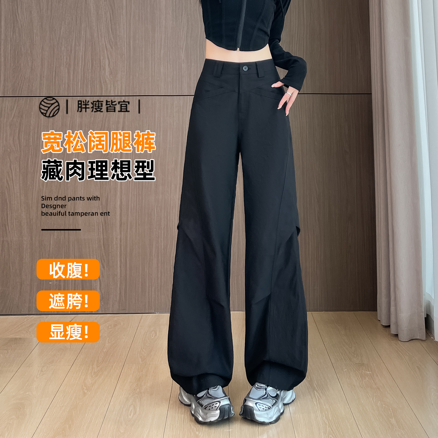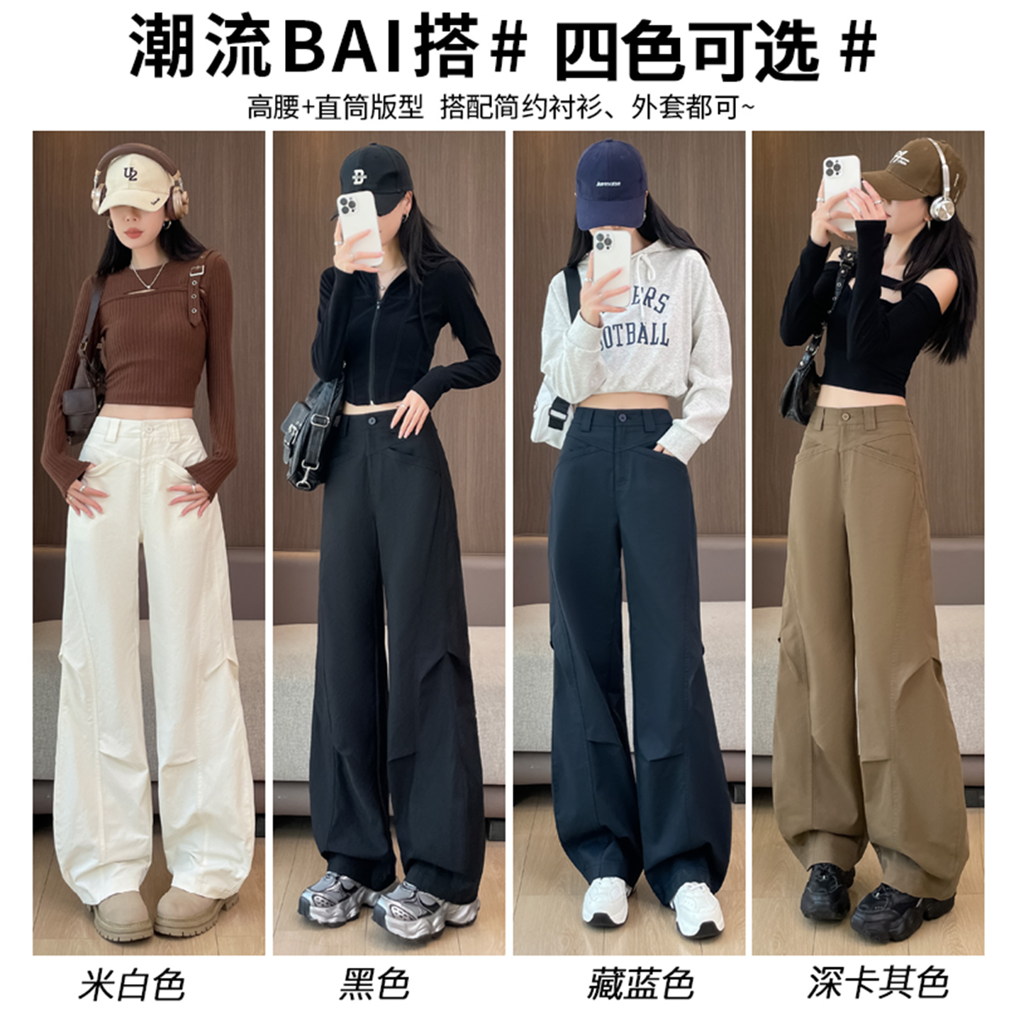 酷飒风高腰宽松显瘦加绒镰刀弯刀香蕉裤 女春秋冬美式 子 阔腿裤 工装