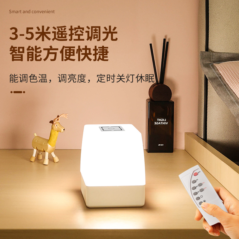遥控小夜灯卧室睡眠灯2025新款 台灯高级感充电床头灯婴儿喂奶护眼