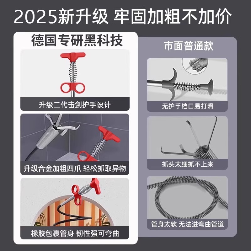 管道疏通器通下水道马桶工具手动厕所神爪捅头发清理堵塞家用神器