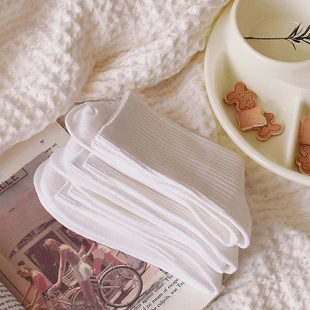 白色袜子女款 纯棉中筒袜无骨堆堆袜抑菌春秋花边防臭吸汗月子长袜