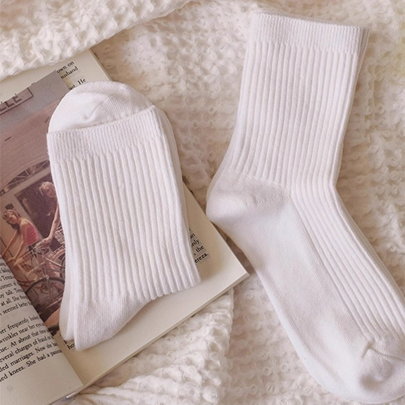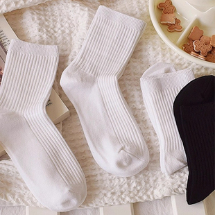 帕兰朵袜子女中筒袜春秋季 棉袜吸汗透气纯色百搭堆堆袜防臭长筒袜