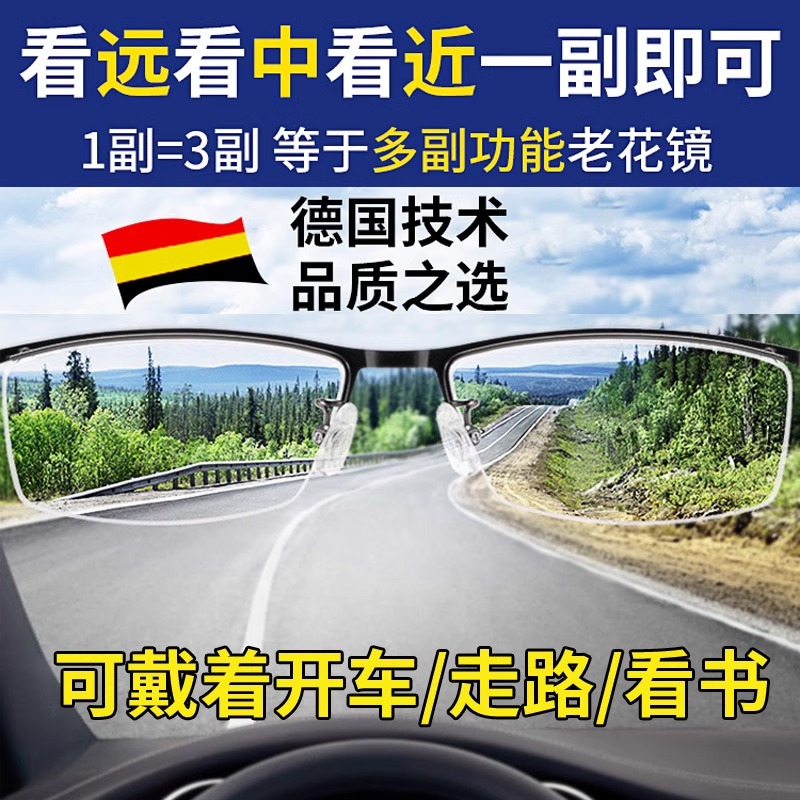 老人眼镜镜片 德国正品 高清老花镜男款 女防蓝光远近两用折叠便携式