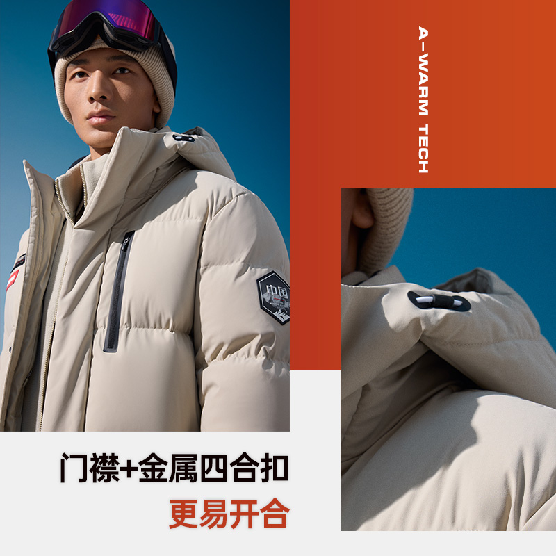 新款 2025冬季 鸭绒保暖棉服防寒加厚外套 运动羽绒服男士 安踏中长款