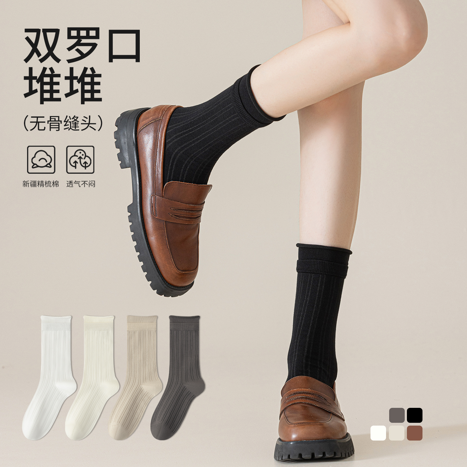 美拉德袜子女春秋款 秋冬女士无骨长筒堆堆袜 中筒袜纯棉搭配勃肯鞋