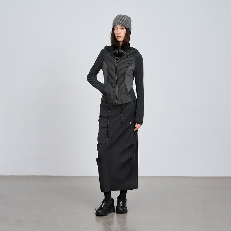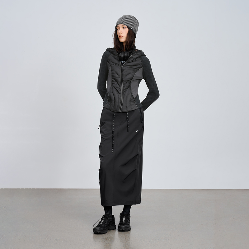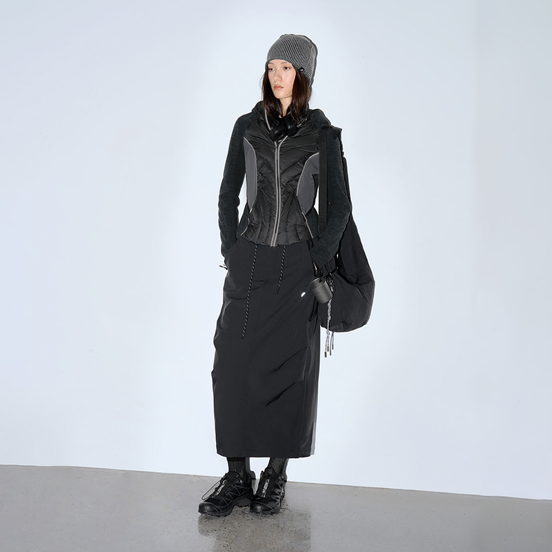 宽松休闲加绒黑色机能风工装 2025冬季 半身裙女 运动 半圆原创女装