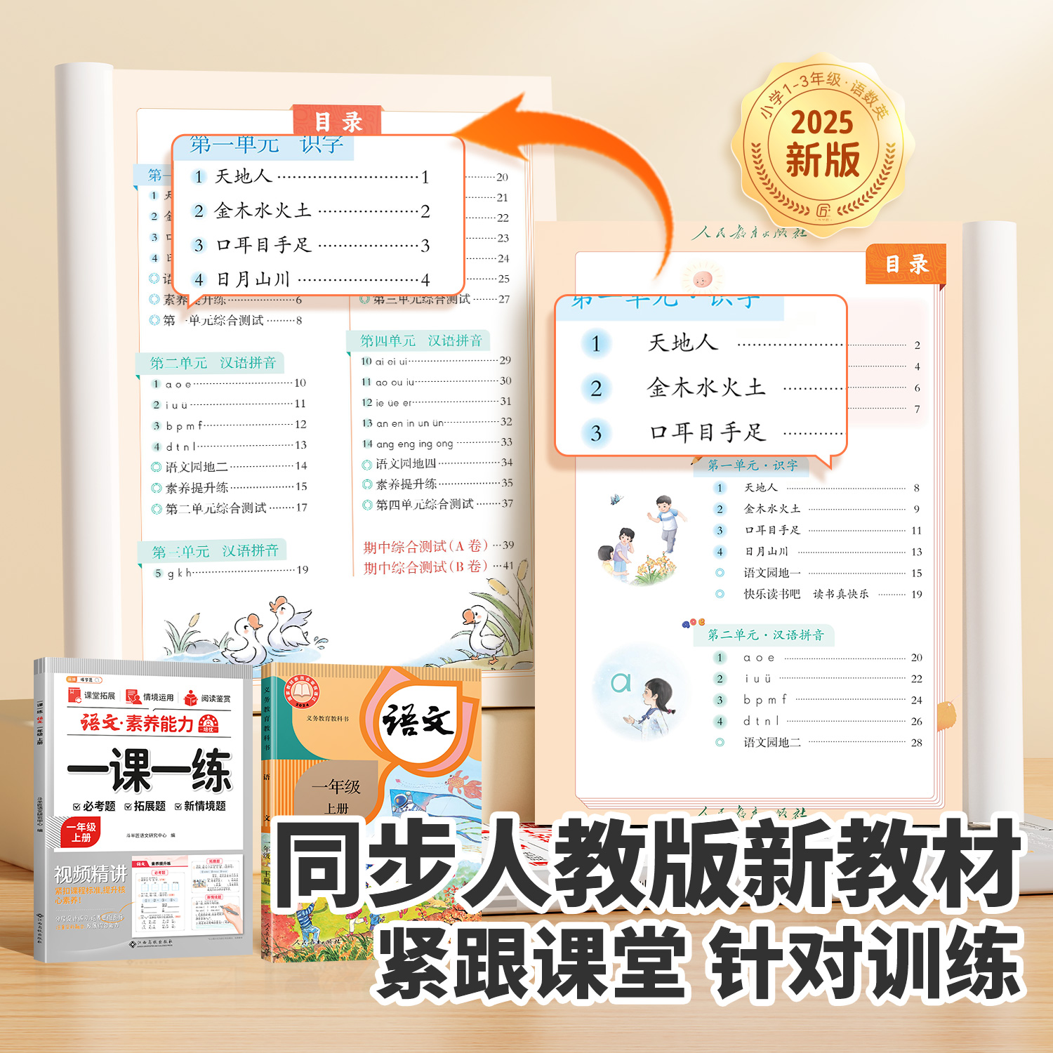 伴学匠2025新版 语文数学小学1年级上新教材课本素养思维能力训练提升每日一练课时作业本 一年级上册一课一练同步练习册全套人教版