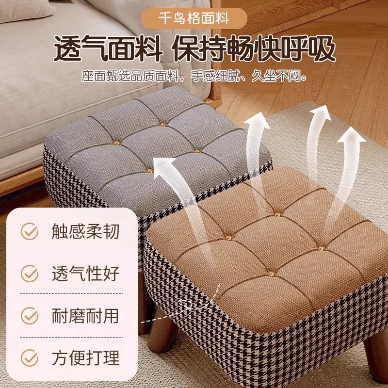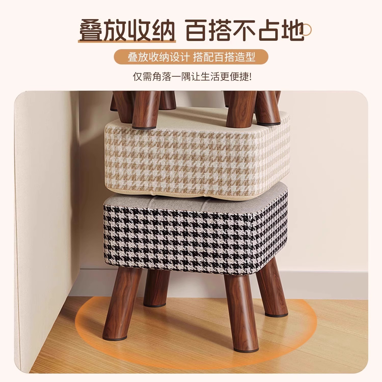 复古实木小板凳门口换鞋 凳简约客厅沙发凳软包方凳小凳子家用矮凳