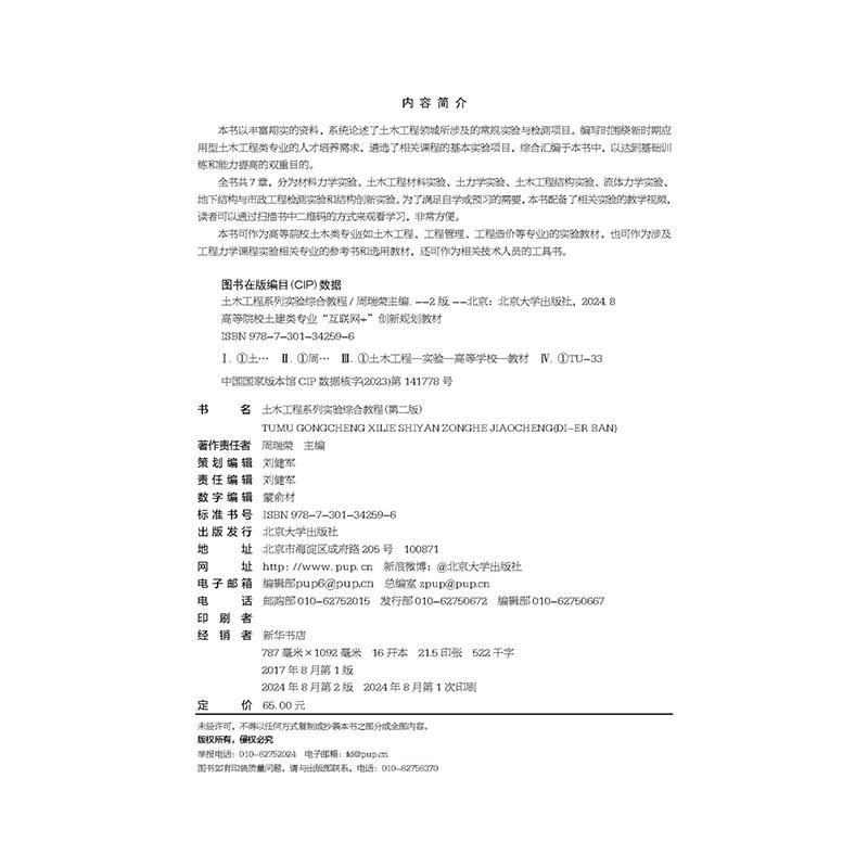 第二版 周瑞荣 北京大学出版 2024新书 社9787301342596 创新规划教材 土木工程系列实验综合教程 互联网 正版 高等院校土建类专业