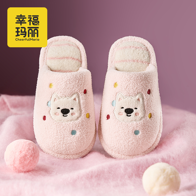 室内亲子可爱女孩小朋友宝宝毛绒拖鞋 2025新款 女童冬季 儿童棉拖鞋