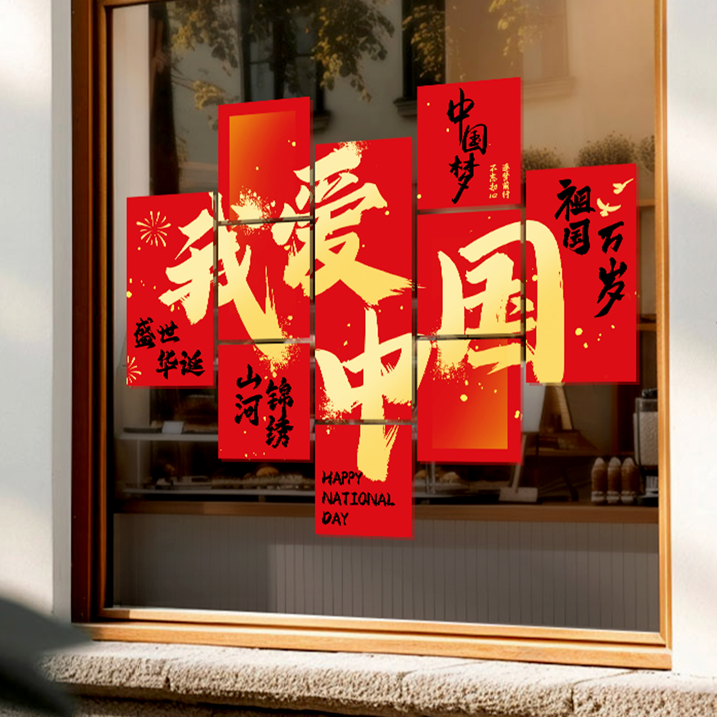 中秋国庆氛围布置节日场景装 饰爱心窗花贴店铺橱窗静电贴玻璃贴纸