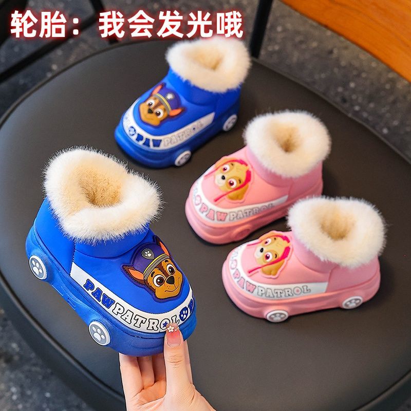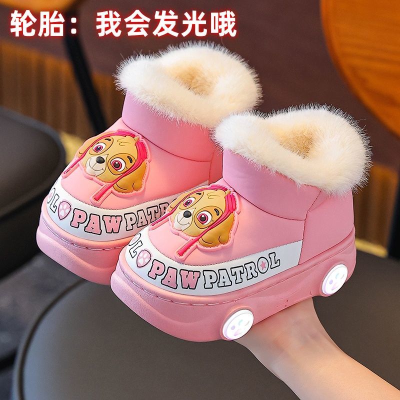 棉拖鞋 汪汪队发光包跟加绒防滑防水婴幼儿宝宝儿童棉鞋 男女孩冬季