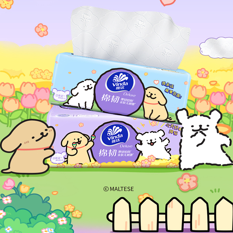 纸巾 维达棉韧90抽加厚面巾纸亲肤抽纸纸抽家用装 线条小狗联名