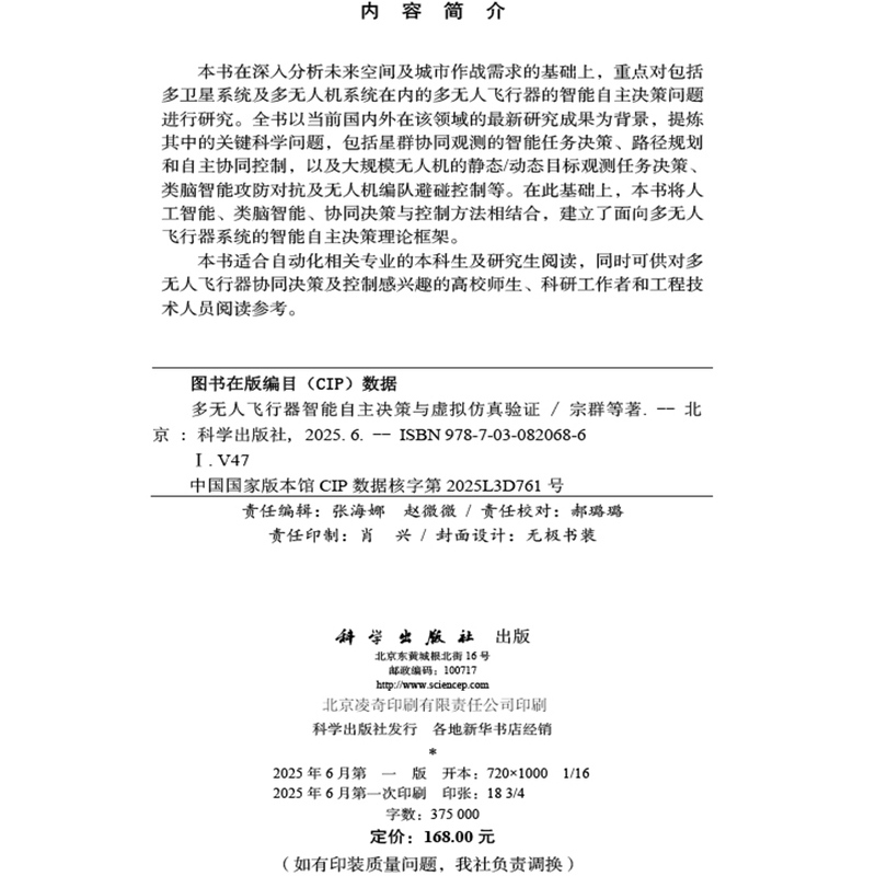 张秀云 刘达刘文静 张睿隆 现货速发 科学出版 宗群 著 社9787030820686 多无人飞行器智能自主决策与虚拟仿真验证