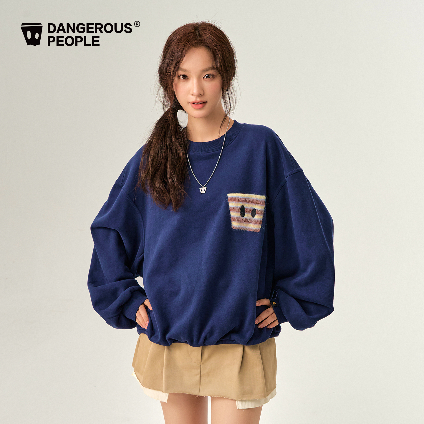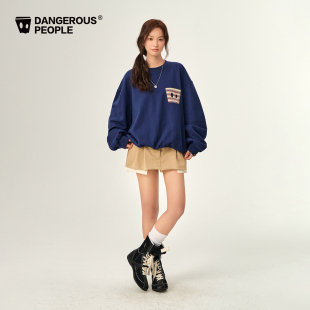 收腰显瘦早秋季 连帽美式 韩系上衣 卫衣外套女2025新款 藏蓝色修身