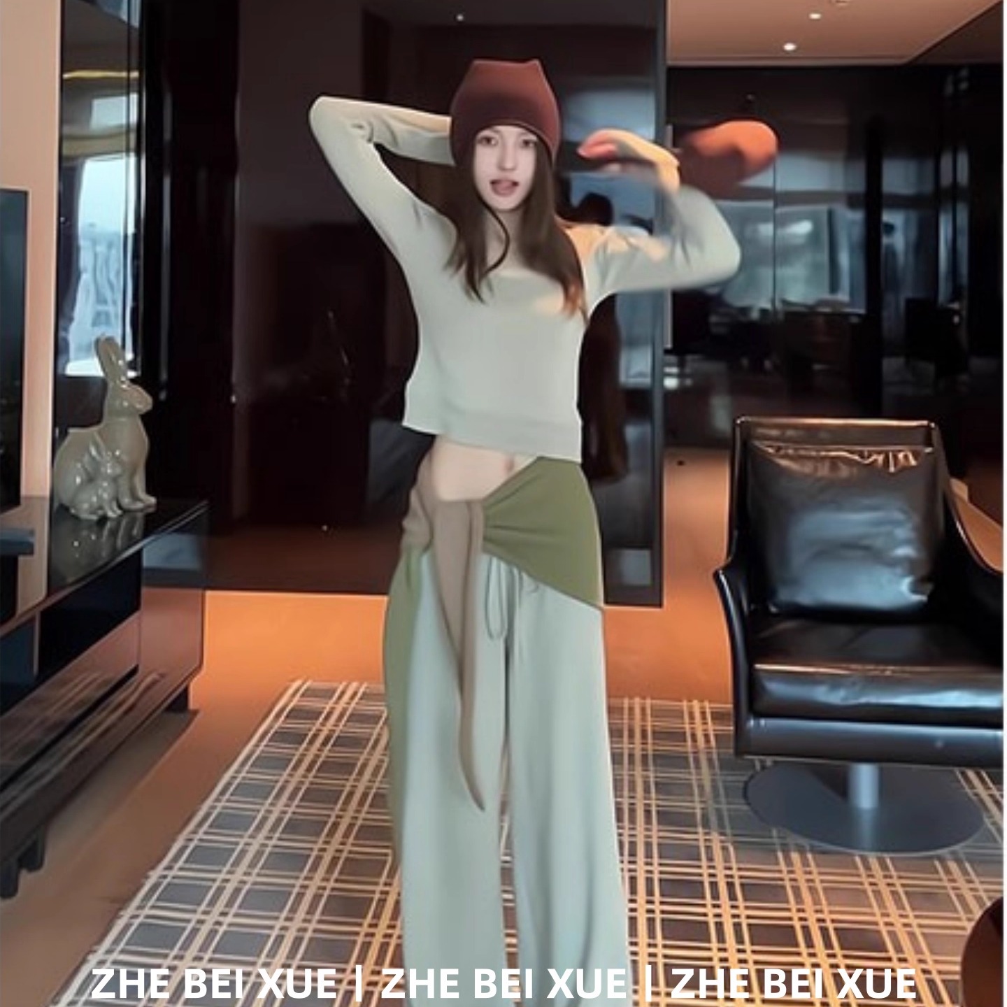 垂感裤 针织上衣高腰休闲裤 气质一整套ootd穿搭 女韩系U领长袖 套装