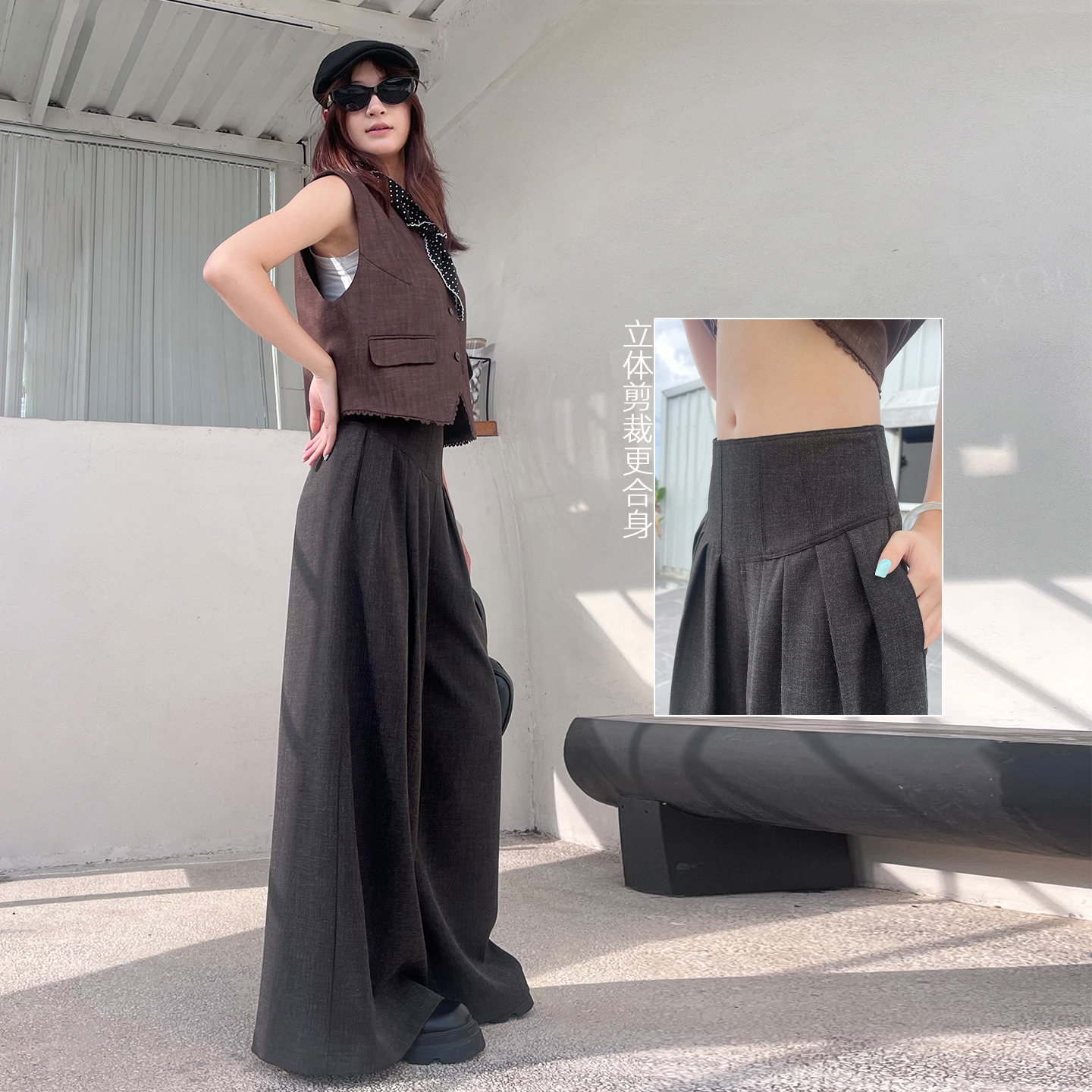 裤 CeTky美式 男女直筒微喇夏季 黑色薄休闲裤 高街cleanfit廓形西裤