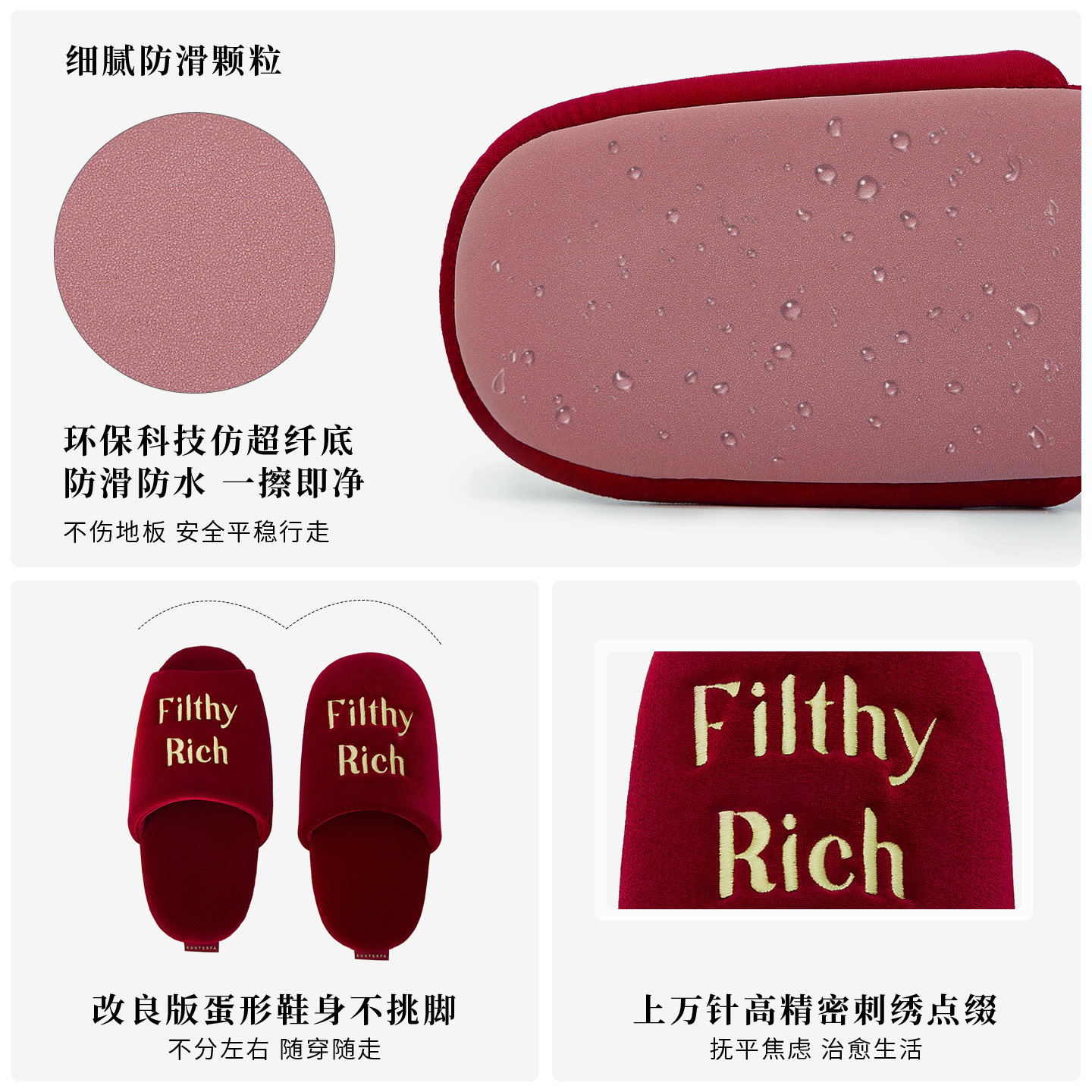 EUXTERPA欧特帕红丝绒甜品拖鞋 静音地板家居秋冬结婚情侣礼物新婚