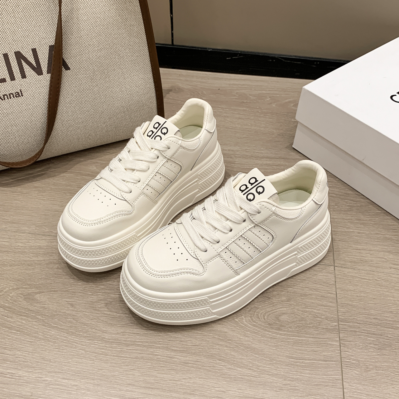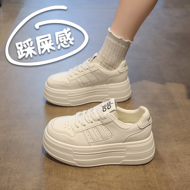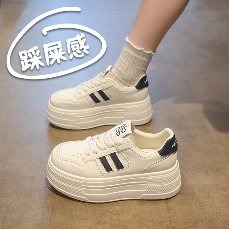 百搭增高轻便白色学生运动休闲板鞋 新款 女2025秋季 环球厚底德训鞋