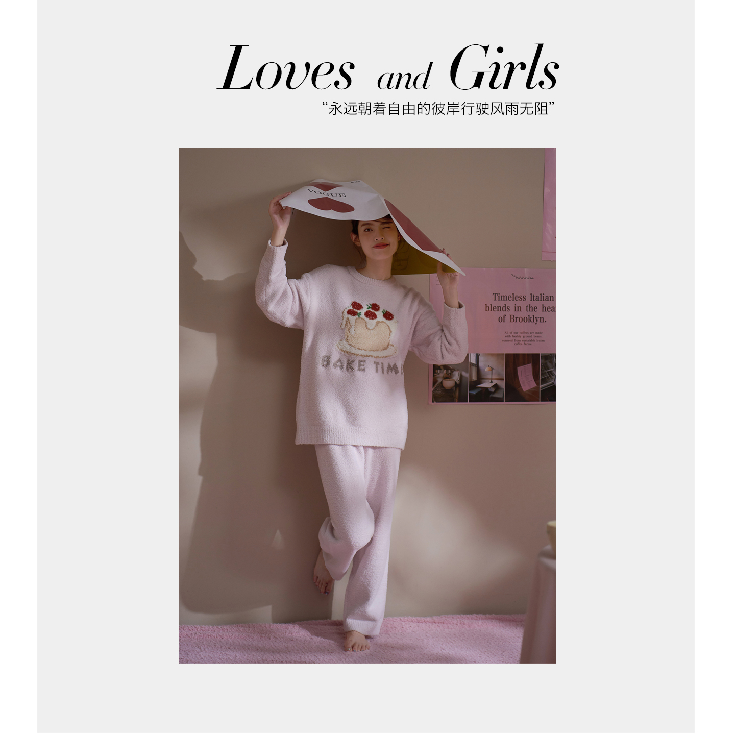 思莉太太半边绒睡衣女款 加厚加绒粉色甜美小个子冬天家居服 秋冬季