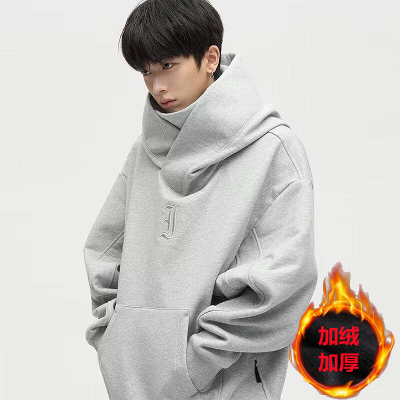 秋冬加绒社恐I人高领联盟澜卫衣情侣男女堆堆领野王运动帽衫 外套