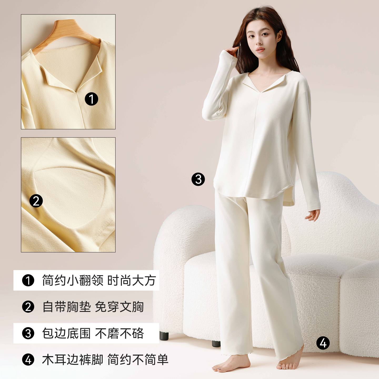 可外穿家居服 宽松薄绒磨毛加厚长袖 睡衣秋女士带胸垫2025新款 冬季