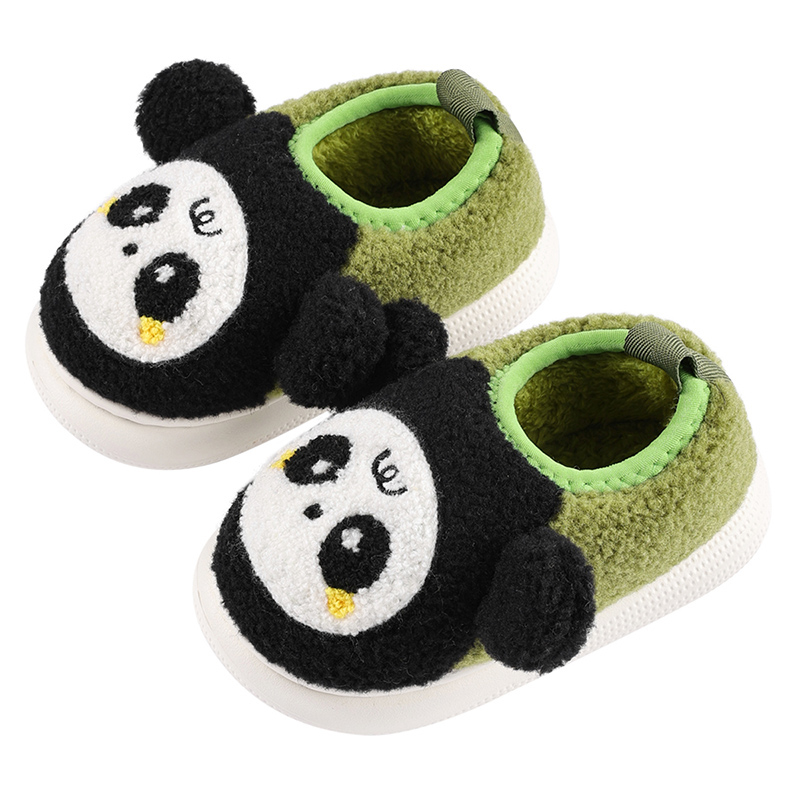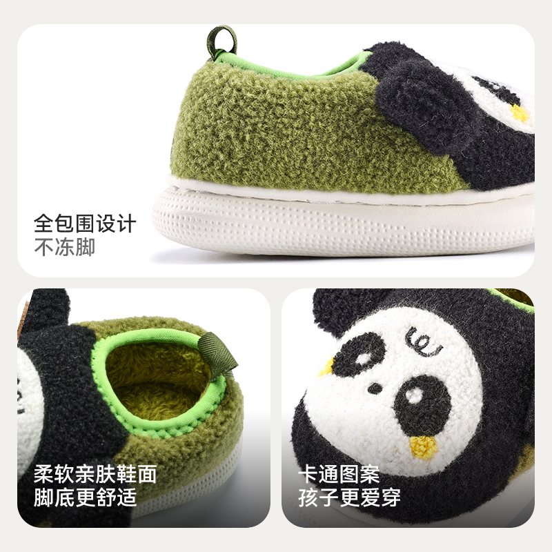 包跟保暖室内毛毛鞋 熊猫儿童棉拖鞋 男童女童男孩小孩宝宝幼儿拖鞋