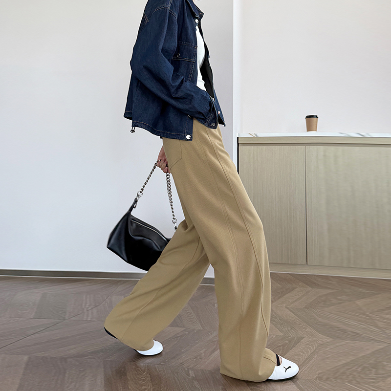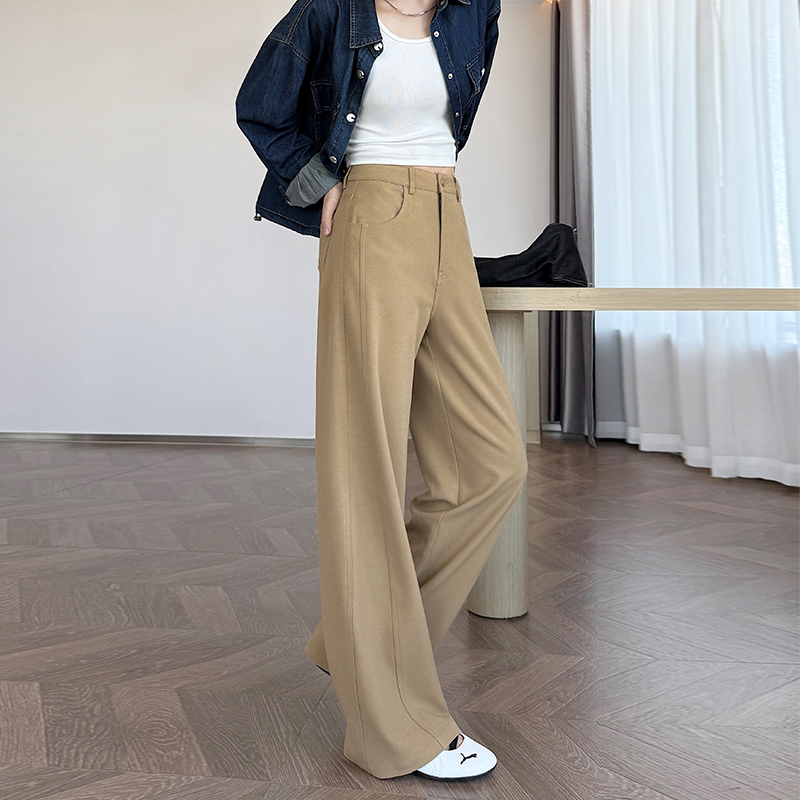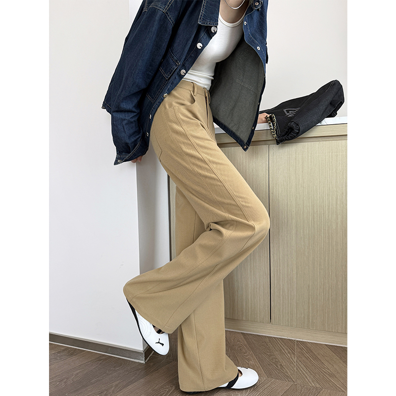 直筒裤 女春秋垂感弯刀绵羊毛加长高个子窄版 阔腿裤 卡其色天丝西装