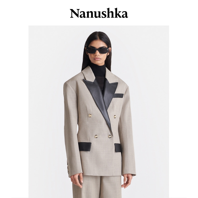 COCOBELLA高智感拼接人丝无领西装 女早秋通勤休闲气质外套SI533B