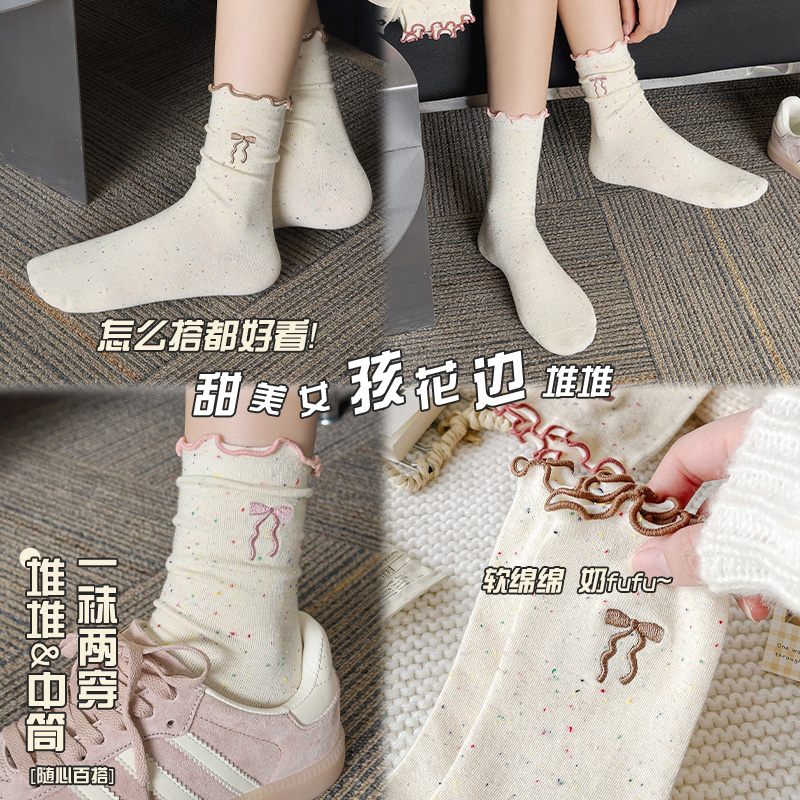 百搭无骨纯棉中筒袜防臭冬季 秋季 长袜 爆款 白色堆堆袜子女2025新款