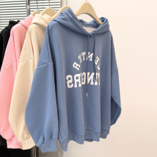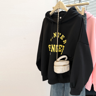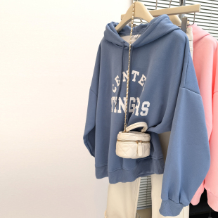 春秋季 长袖 薄款 宽松韩版 上衣慵懒风外套 连帽衫 粉色卫衣女2025新款