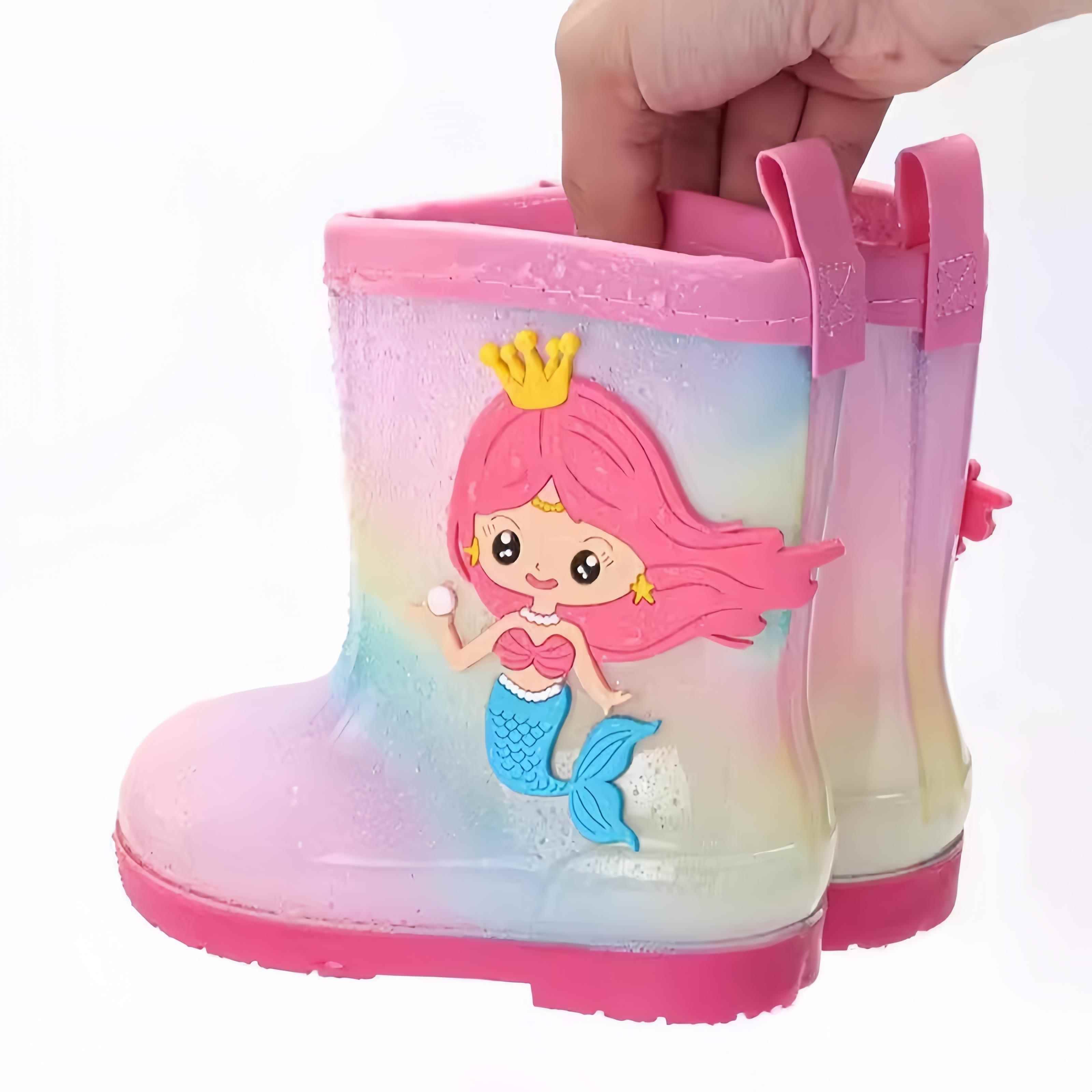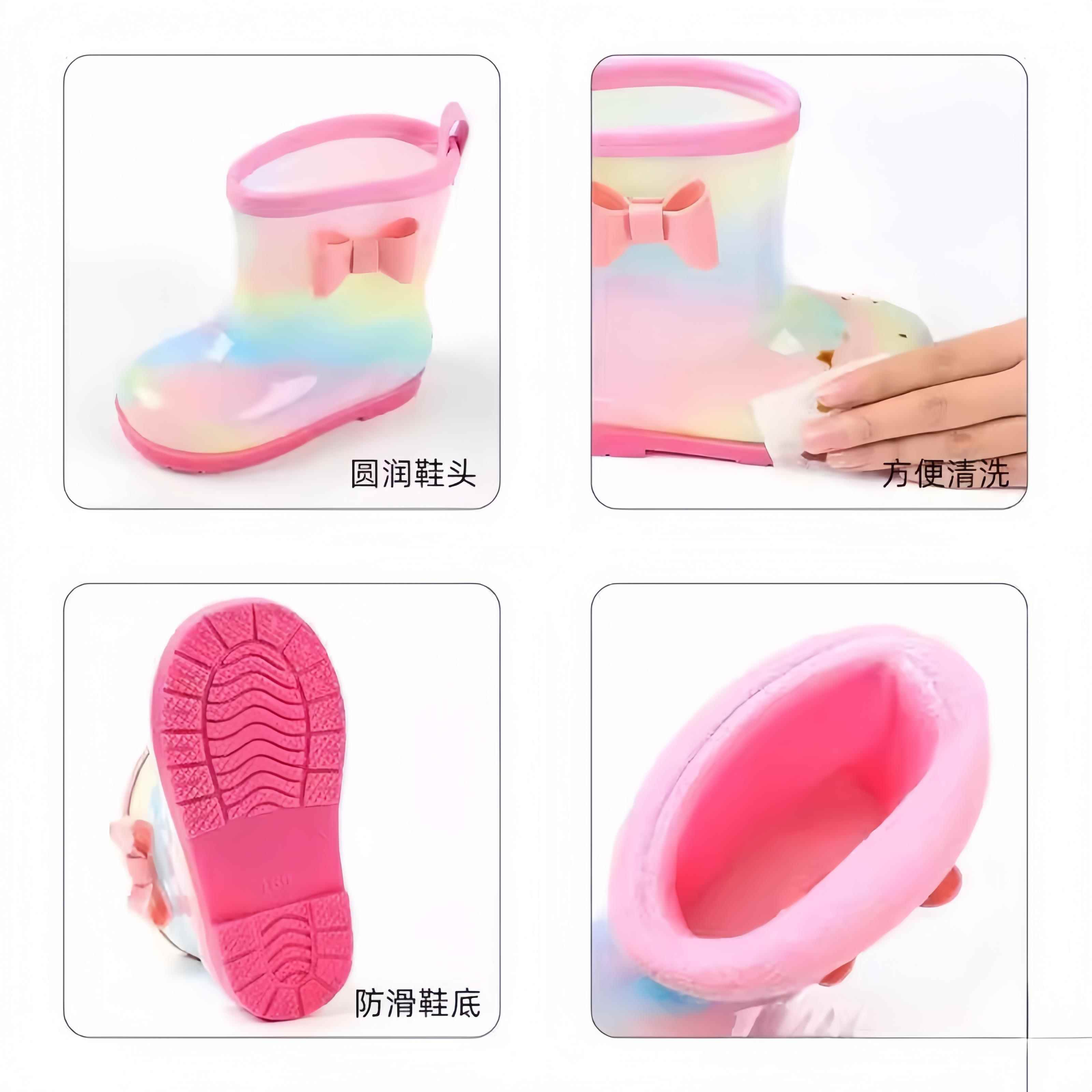 儿童雨鞋 小孩加绒水靴可爱彩虹 公主女童幼儿园宝宝防滑雨靴水鞋
