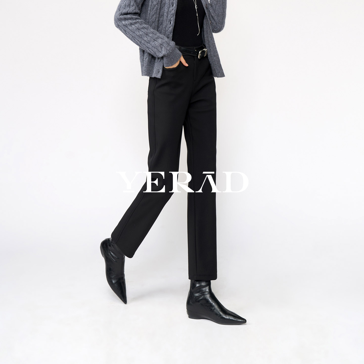 女春秋新款 休闲直筒慵懒松弛感裤 高腰垂感窄版 裤 子 西装 黑色阔腿裤