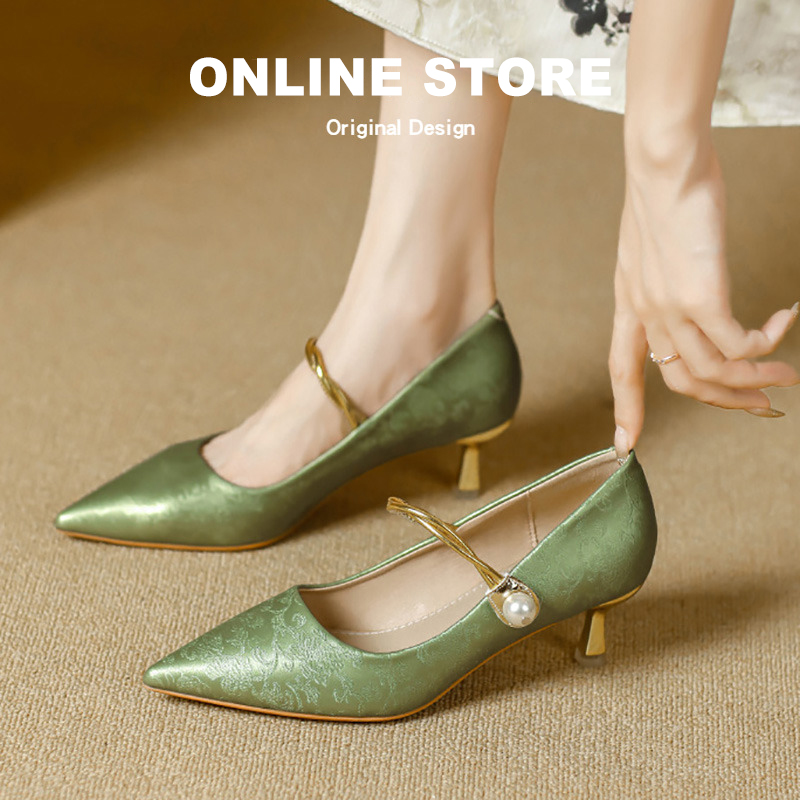 配旗袍晚礼服女鞋 女2025尖头玛丽珍单鞋 国风黑色气质高跟鞋 新中式