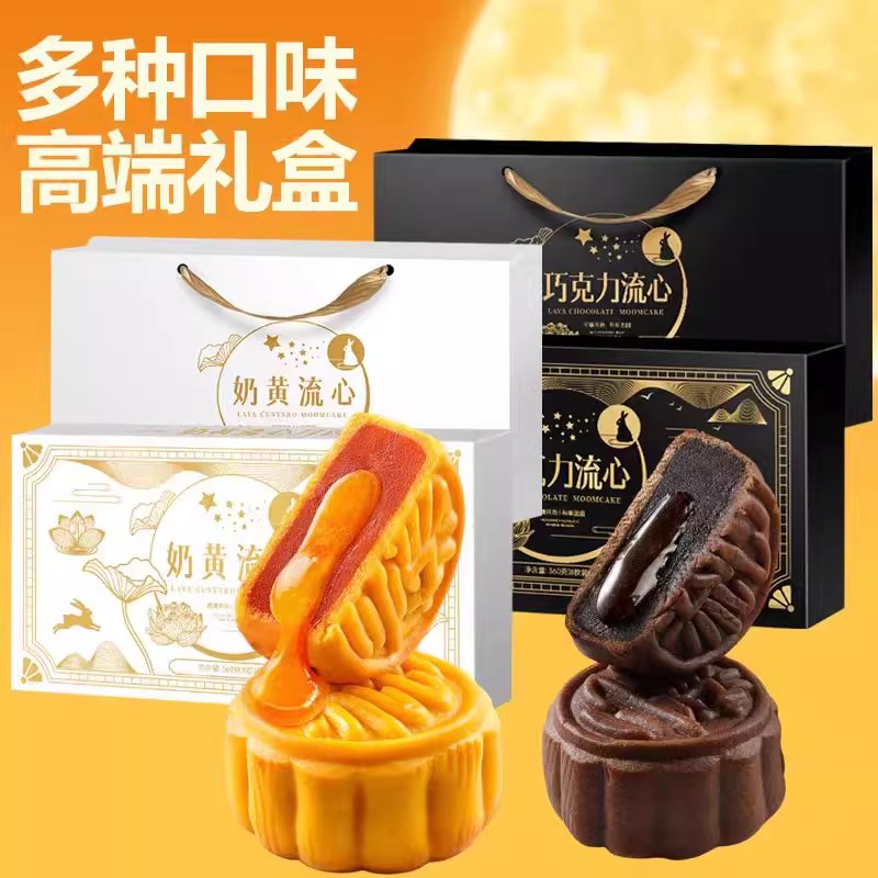 巧克力味流心月饼礼盒2025新款 奶黄中秋送礼零食小吃休闲食品 广式